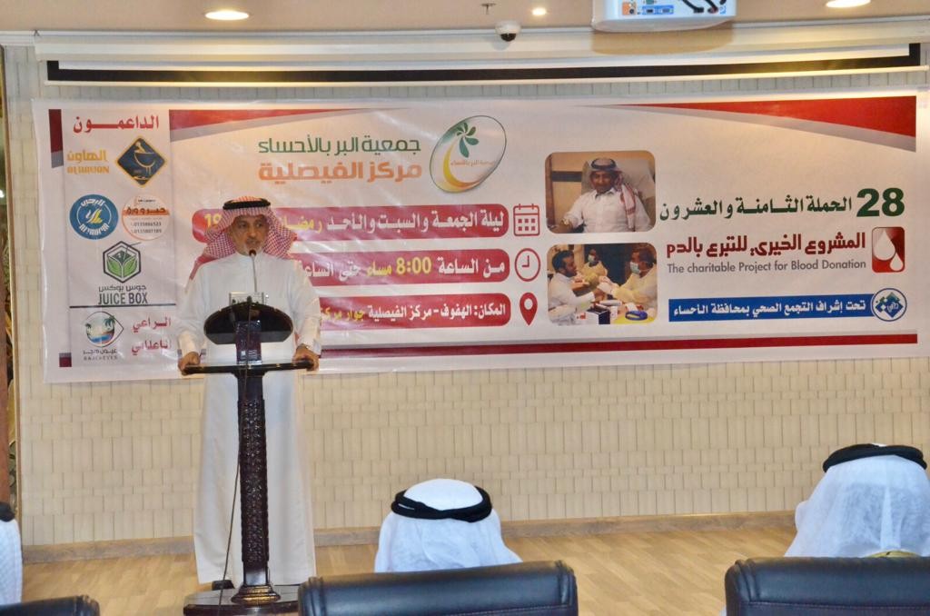 ضمن مشروعه الخيري للتبرع بالدم نظم مركز الفيصلية التابع لجمعية البر بالأحساء حملته الثامنة والعشرين بحضور عدد من رجال الأعمال والناشطين الاجتماعيين والمتبرعين بالدم ، مساء يوم أمس الخميس