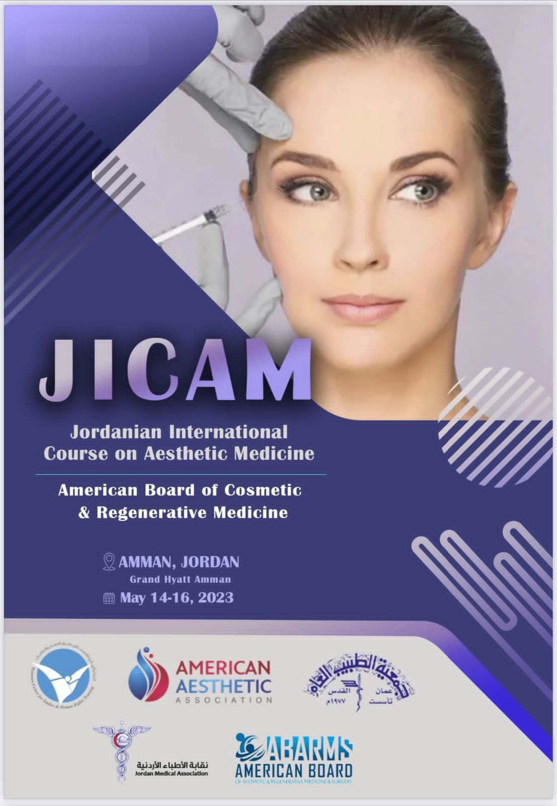 ينظم المركز الريادي برعاية نقيب الأطباء الدكتور زياد الزعبي دورة تدريبية طبية مكثفة في الطب التجميلي، وذلك بفندق حياة عمان بمشاركة عربية وعالمية.