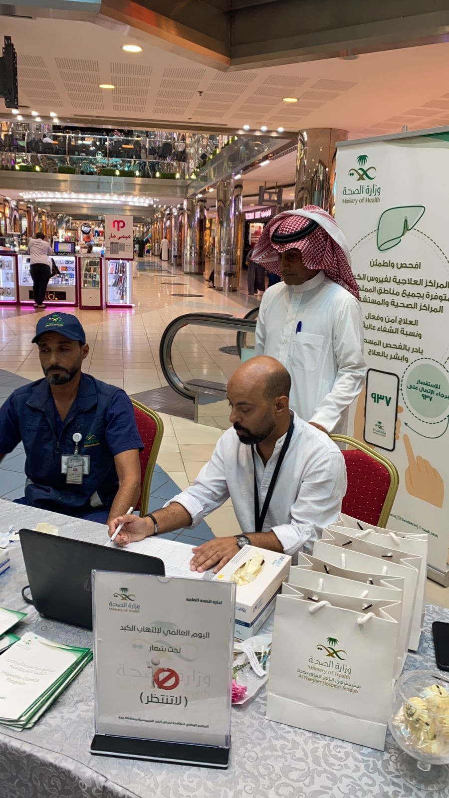 فعل⁧‫ مستشفى الثغر العام‬⁩ بجدة فعاليات شهر يوليو 2023 في ⁧‫الصيرفي مول حيث تخلل الفعالية العديد من الأنشطة والأركان التوعوية ‏وكذلك ركن توعوي عن (صيفك ضيف) بهدف توعية وتثقيف المجتمع بمشاركة إدارة الصحة العامة ممثلًا بالبرنامج الوطني لمكافحة أمراض الكبد الفيروسية بمحافظة جدة.