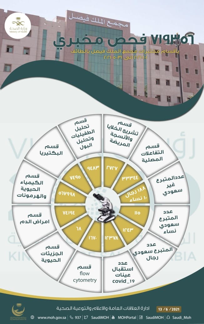 مجمع الملك فيصل الطبي بالطائف يجري أكثر من 700 ألف فحص مخبري