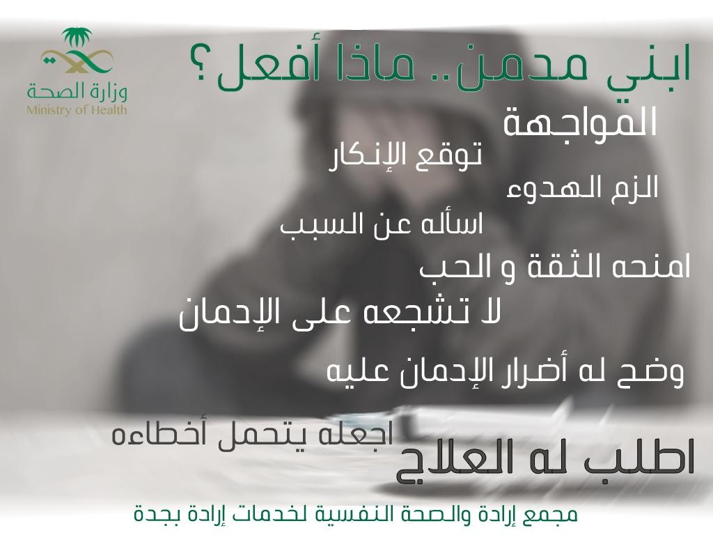 يواصل مجمع إرادة والصحة النفسية لخدمات إرادة بجدة ممثلاً في إدارة العلاقات العامة والإعلام والتوعية الصحية نشر مجموعة من المنشورات والرسائل التوعوية والتثقيفية والتأهيلية والعلاجية للوقاية من تعاطي المخدرات والتي تساهم بشكل كبير في رفع مستوى الوعي والإدراك بين أفراد الأسرة والمجتمع عبر التسلسل الصحي الذي يلازم الأفراد ومن ثم خسارة حياتهم تدريجياً ، وقد أشارت الرسالة التوعوية لهذا الأسبوع على ضرورة منح الثقة للأبنأء وفتح قنوات الحوار والتواصل معهم والنقاش حول أضرار المخدرات وعدم التأخر في طلب العلاج للحالات التي وقعت في براثنها نتيجة جلساء السوء .