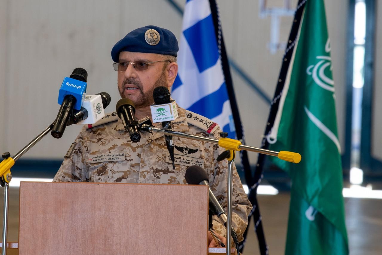 من جانبه أكد معالي رئيس هيئة الأركان العامة الفريق الأول الركن فياض بن حامد الرويلي بأن مشاركة القوات الجوية الملكية السعودية في تمرين (عين الصقر 1) بجمهورية اليونان خلال الشهر الحالي تأتي انطلاقاً من حرص حكومة سيدي خادم الحرمين الشريفين الملك سلمان بن عبدالعزيز آل سعود القائد الأعلى لكافة القوات العسكرية-أيده الله- على حرصه الدائم ودعمه غير المحدود لتطوير القوات المسلحة، وبتوجيه من صاحب السمو الملكي الأمير محمد بن سلمان بن عبدالعزيز، ولي العهد نائب رئيس مجلس الوزراء وزير الدفاع -رعاه الله- ومتابعة من سيدي صاحب السمو الملكي الأمير خالد بن سلمان بن عبدالعزيز نائب وزير الدفاع -حفظه الله-.