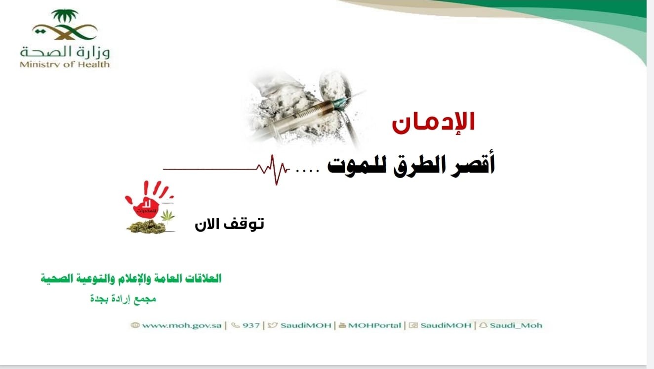 يواصل مجمع إرادة والصحة النفسية لخدمات إرادة بجدة ممثلاً في إدارة العلاقات العامة والإعلام والتوعية الصحية بمجمع إراده توجيه رسائله المجتمعية بخطورة المخدرات وأضرارها الكبيرة على الفرد والأسرة والمجتمع لما لها من خسائر كبيرة ومتعددة ، وجاء شعار توقف كأبرز الشعارات الهامة التي يوجهها المجمع هذا الأسبوع تزامناً مع بدء مرحلة إنطلاقة العام الدراسي الجديد وعودة الحياة الطبيعية تدريجياً من أجل مجتمع أسري واعد.
