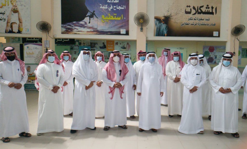 وفي ختام الجولة التقى المسعودي بمعلمي المدرسة مرحباً بهم بمناسبة عودتهم إلى مدارسهم قبيل انطلاقة العام الدراسي الجديد مثمنا جهودهم في عملية التعليم عن بعد من خلال  منصة مدرستي كما أكد على أهمية المرحلة القادمة آملاً منهم مضاعفة جهودهم.