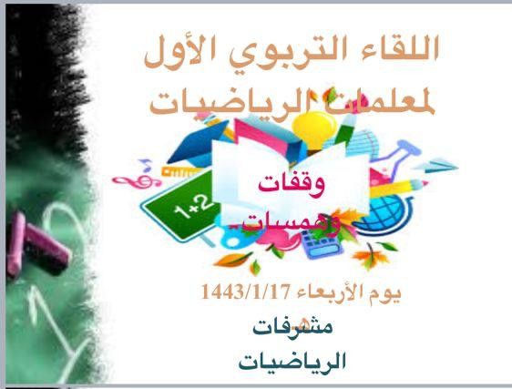 عقدت الإدارة العامة للتعليم بمنطقة مكة المكرمة ممثلة في مكتب تعليم شرق مكة اللقاء التربوي الأول لمعلمات الرياضيات بعنوان "وقفات وهمسات" ، نفذته المشرفتان سلمى الوقداني وفاطمة الدوسري يوم الأربعاء الموافق 1443/1/17هـ عن بعد عبر برنامج الزوم تحت إشراف مديرة المكتب أمل باجابر .
