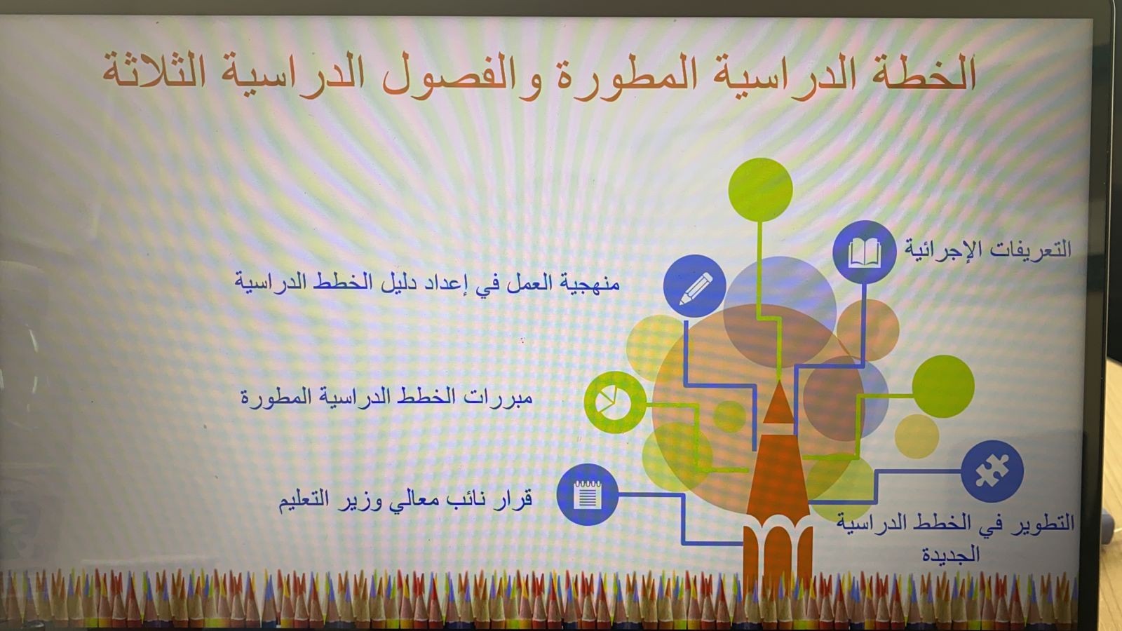 استهدف اللقاء 92معلمة وذلك بهدف تعريفهن بمستجدات الميدان التعليمي وماهية خطة تطوير المناهج والفصول الدراسية الثلاثة وتمكينهن من آلية تقسيم الطالبات وفق لائحة تقويم الطالب 1443هـ وتحسين أداء المعلمات بناء على التغذية الراجعة لتجربة التعليم عن بعد لعام 1442هـ.