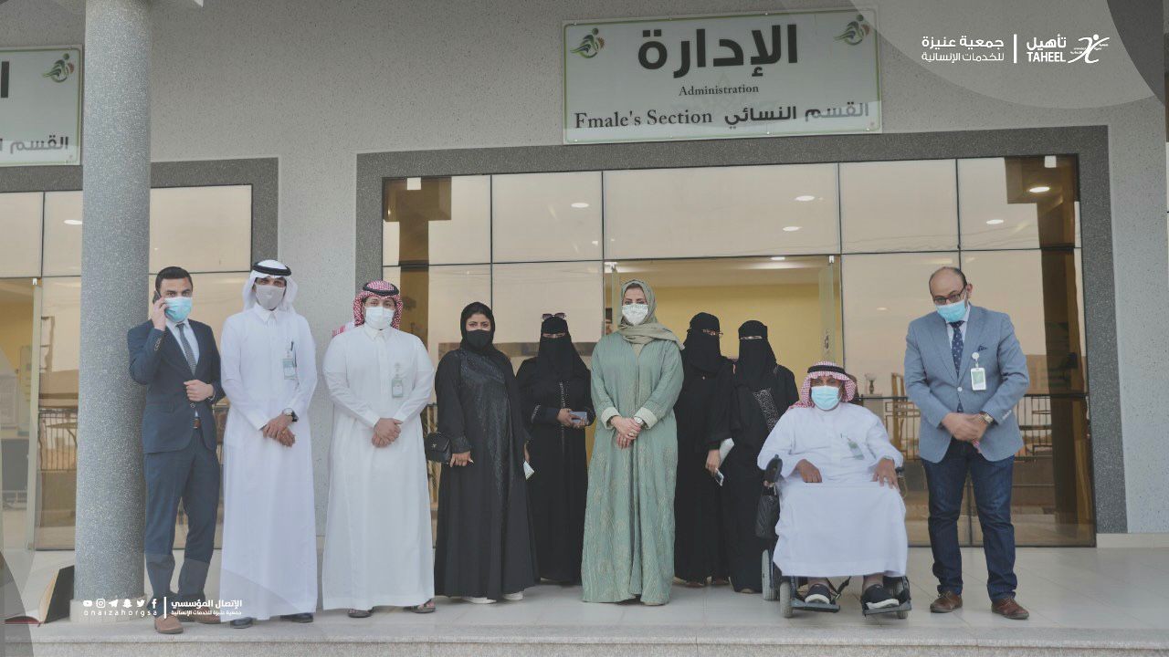 قامت سمو الأميرة هند بنت عبدالرحمن آل سعود، رئيسة مجلس إدارة جمعية فكرة للابتكار وريادة الاعمال الاجتماعية بعنيزة، بزيارة لجمعية عنيزة للتنمية والخدمات الإنسانية، بحضور عدد من أعضاء مجلس إدارة الجمعية، والمدير التنفيذي لجمعية فكرة للابتكار وريادة الاعمال الاجتماعية، الأستاذة/ أمل العوض، وكان باستقبالهم لدى وصولهم لمقر مدينة جمعية عنيزة الإنسانية الأمين العام المكلف الأستاذ/ ممدوح الحربي، ومدير مجمع الجفالي للرعاية والتأهيل الأستاذ/ يوسف بن عبدالله الرميح، ومشرف الاعلام والعلاقات العامة بإدارة الإتصال المؤسسي الأستاذ/ عبدالعزيز الخشيبان، وعدد من مدراء المراكز بالجمعية.. حيث بدأت الزيارة باجتماع خاص في مسرح مبنى الأمانة العامة بمجمع الجفالي للرعاية والتأهيل، تخلله عرض مصور عبارة عن فلم وثائقي عن الجمعية بمشاريعها الإنسانية الحالية والمستقبلية لخدمة الاشخاص ذوي الإعاقة، بعدها قامت سمو الأميرة والوفد المرافق معها بجولة على عدد من اقسام مجمع الجفالي واستمعت لشرح مفصل عن الخدمات التي تقدمها للمستفيدين من البنين والبنات من الأشخاص ذوي الإعاقة كما شاهدت حاضنات الأعمال بمركز الخنينية للتمكين الوظيفي والاجتماعي لذوي الإعاقة، والتي تهدف إلى توظيف المعاقين من الشباب والفتيات، في سوق العمل، والتي تقوم على تمكين ذوي الإعاقة مهنياً واجتماعياً ونفسياً واقتصادياً وتدريبهم على وظائف يتم توظيفهم فيها في سوق العمل مباشرة أو في حاضنات أعمال مخصصة لهم ،، وفي ختام هذه الزيارة عبّرت سمو الأميرة هند بنت عبدالرحمن آل سعود، عن سعادتها البالغة بزيارة الجمعية التي تستهدف خدمة الأشخاص ذوي الإعاقة من البنين والبنات، مؤكدة أن سمو أمير منطقة القصيم الأمير الدكتور فيصل بن مشعل بن سعود، حين منح عنيزة لقب "محافظة الإنسانية" فإن هذا الوسام لم يأتي لمجرد لقب عابر إنما هو حقيقة شاهدناها على أرض الواقع في هذه الجمعية الفتية الرائدة لخدمة الأشخاص ذوي الإعاقة، حيث اشادت سمو الأميرة بالجهود المبذولة التي يقدّمها العاملون في الجمعية من مجلس إدارة ومديري المراكز والمختصين، مؤكدة سمو الأميرة بأن جمعية عنيزة للتنمية والخدمات الإنسانية أحدثت نقلة نوعية في مواكبة أحدث التقنيات المتطورة في جميع التخصصات لأبنائنا ذوي الإعاقة، وما تحظى به الجمعية من سمعة طيبة محلياً وإقليمياً، والتي أكدت بالقول والفعل بأنها حاضنة الإبداع في مسيرة إنسانية راقية، الذي إستمتعنا بمشاهدة ذلك عبر الفلم الوثائقي عن الجمعية، وفق عمل منظم وتخطيط رائع ونظرة مستقبلية وتطلعات للوصول للعالمية في هذا المجال لخدمة الأشخاص ذوي الإعاقة.