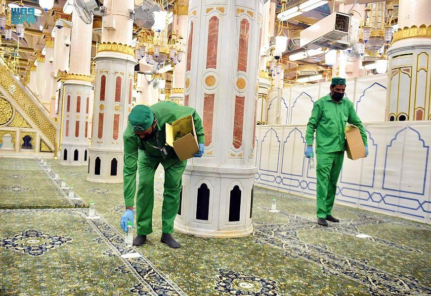 هذا واستخدم العاملون 90 حافظة ماء زمزم محمولة على الظهر لسقيا المصلين في المسجد النبوي, ضمن الإجراءات الاحترازية والتدابير الوقائية التي تم اتخاذها على مدار الأشهر الماضية والتي شملت منع استخدام الأكواب البلاستيكية حفاظاً على سلامة المصلين والزائرين.