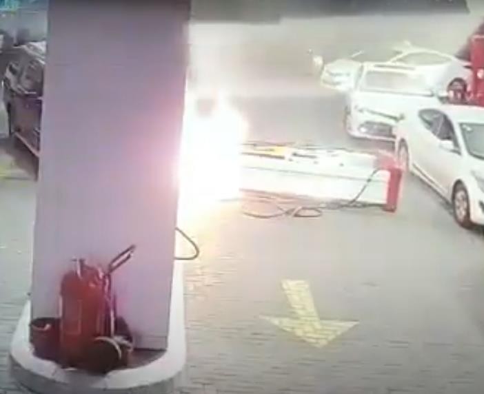 وأظهر مقطع فيديو التقطته كاميرا مراقبة، إحدى المركبات كانت تنتظر دورها للتزود بالوقود، قبل أن تنحرف عن مسارها وتصطدم بالمضخة، ما أدى لاشتعال النيران.