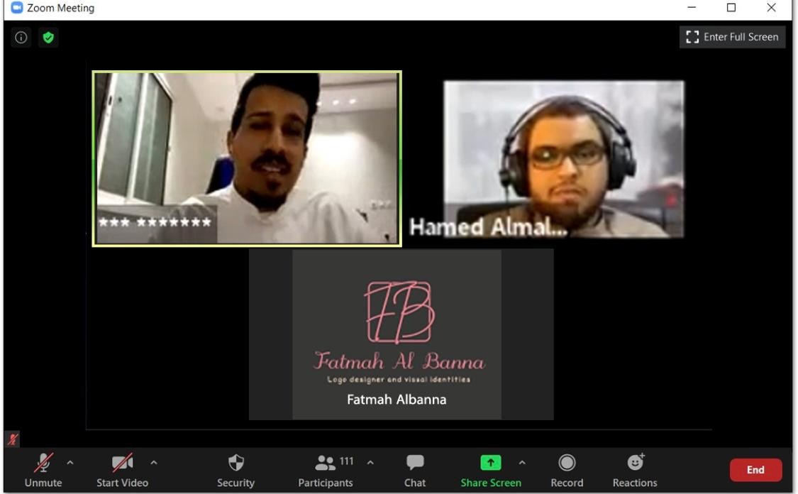 ونوهت إلى أن قائمة المتحدثين ضمت: نجلاء الكثيري (مساعد مدرب سفير أدوبي في الشرق الأوسط)، عبد العزيز المنصور (مصمم شعارات وهويات تجارية)، محمد المعاوي (أخصائي موشن)، جندب الأنصاري (مصمم جرافيك ورسام معماري)، علي الرويلي (مصمم شعارات)، سارة الشمراني ( التنفيذي إليفار للتسويق والحلول الإبداعي)، أشواق الغامدي (تسويق رقمي -ايفار)، سليمان الدلالي (خبير في مجال التقنية)، سليمان الرميخان (متخصص في صناعة المحتوى الرقمي)، حامد المالكي (معلق صوتي)، محمد السلوم (مهتم بالتدريب التقني، مؤسس منصة مهارة تقنية )، دعد الحكمي (مصممة جرافيك وشريك مؤسس لمنصة سدس)، نورة الزهراني (مؤسس منصة سيرة)، محمد وبر (منصة دال الرقمية)، فاطمة محمد (منصة دال الرقمية) ، سارة مهدي (منصة استشارات سارة)، وثمنت الدور الذي قام به شركاء النجاح وعلى رأسهم المنصة السعودية حامد العطاس (شريك إعلامي)، جمعية ربان (شريك تقني)، إبراهيم الشليلي (مؤلف كتاب رحلة مصمم) وصانع شعارات، عبدالله ياسين (مؤسس منصة gd-workshop)، ومدحت عيد (سفير ادوبي في الشرق الأوسط ومؤسس منصة inspire-me).