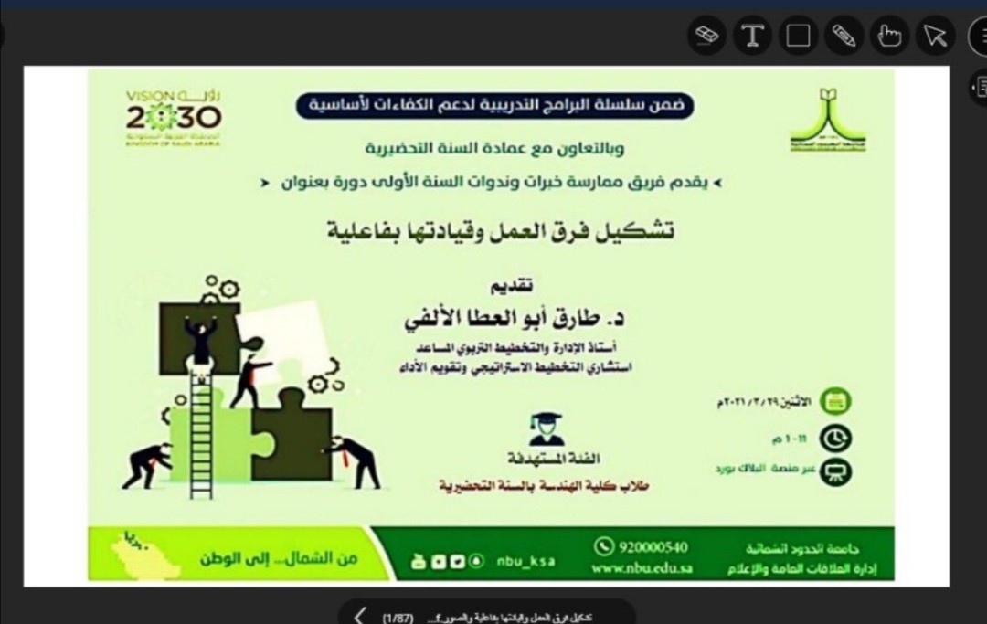 عمادة السنة التحضيرية بجامعة الحدود الشمالية تقيم دورة تدريبية بعنوان : "تشكيل فريق العمل وقيادتها بفاعلية"