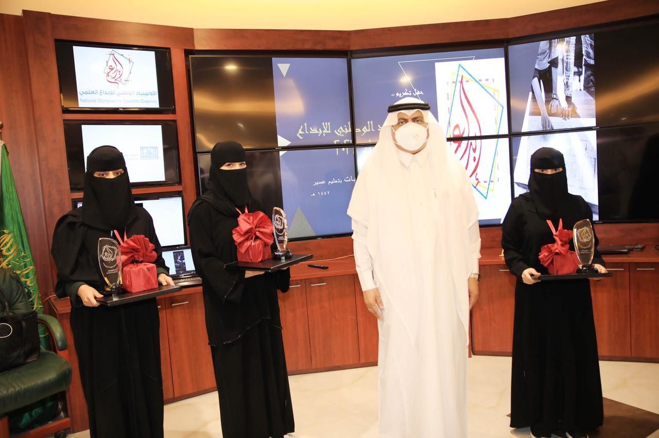كرم مدير عام التعليم في منطقة عسير سعد الجوني الخميس الماضي الطالبات الموهوبات المشاركات في الأولمبياد الوطني للإبداع العلمي "إبداع" 2021 ، ضمن منتخب المملكة للعلوم والهندسة بمعرض "ريجنيرن" الدولي للعلوم والهندسة" 2021 ISEF ".
