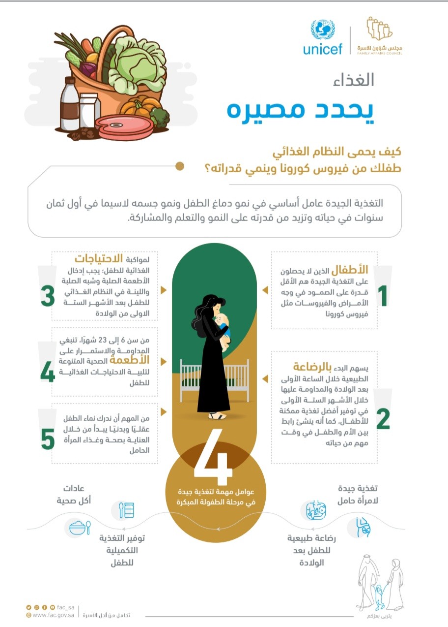 تستهدف الحملة -التي جاءت انطلاقا من تفعيل خطة لجنة الطفولة المعتمدة بمجلس شؤون الأسرة- الآباء والأمهات، ومقدمي الرعاية والعاملين والمعنين في مجال الطفولة المبكرة؛ للتوعية بحاجات الطفل من التغذية الصحية، وتعزيز الجهود والمبادرات الوطنية التي تدعم الطفولة المبكرة، إلى جانب نشر التوعية بأهمية الألف يوم الأولى في حياة الطفل، ومرحلة الطفولة المبكرة في المملكة.