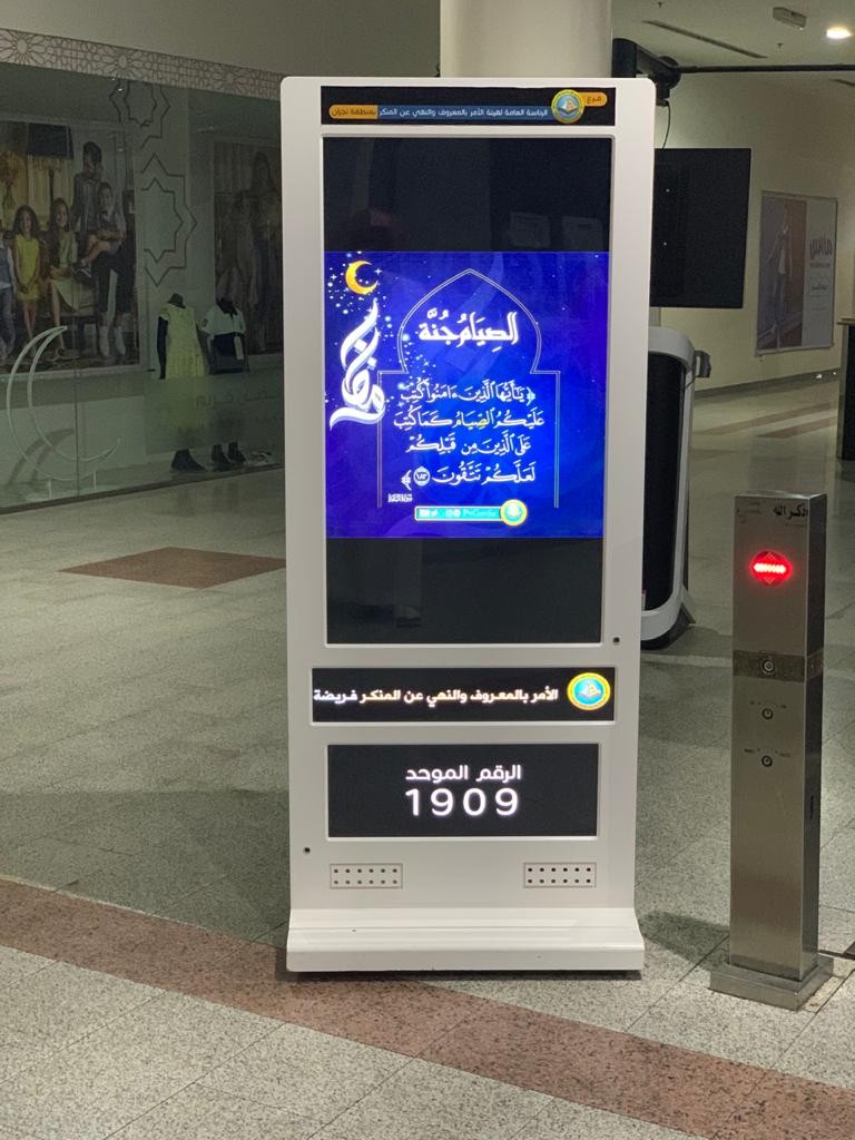 فعّل فرع الرئاسة العامة لهيئة الأمر بالمعروف والنهي عن المنكر بمنطقة نجران البرنامج التوعوي “الصيام جُنّة” في الأسواق والأماكن العامة بالتعاون مع الجهات الحكومية الأخرى والمجمعات التجارية ، من خلال عرض إصدارات الرئاسة العامة على الشاشات الإلكترونية واللوحات الثابتة، وذلك ضمن الأعمال التوعوية للتذكير بفضل الصيام وآدابه.