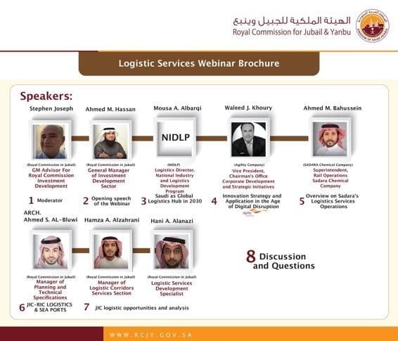 نظمت الهيئة الملكية بالجبيل مساء أمس الأربعاء وعبر الاتصال المرئي ندوة عن الخدمات اللوجستية شارك بها كل من الهيئة الملكية بالجبيل، وبرنامج تطوير الصناعة الوطنية والخدمات اللوجستية (ندلب)، وشركة أجليتي، وشركة صدارة للكيماويات.