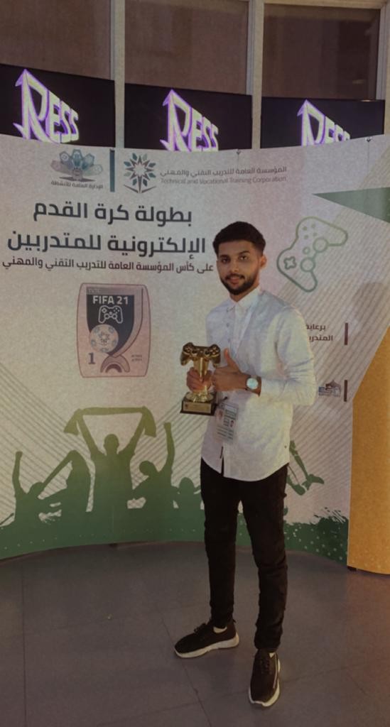 حقق المتدرب بفرع الكلية التقنية بالعارضة بمنطقة جازان يحيى قاسم نشيلي كأس المؤسسة العامة للتدريب التقني و المهني لبطولة كرة القدم الإلكترونية للمتدربين "فيفا ٢١" على مستوى كليات المملكة بعد تغلبه في المباراة النهائية على المتدرب نايف عبدالعزيز غالب من المعهد الصناعي الثانوي بالمدينة المنورة بنتيجة ٣_٢ في الأشواط الإضافية من اللقاء .