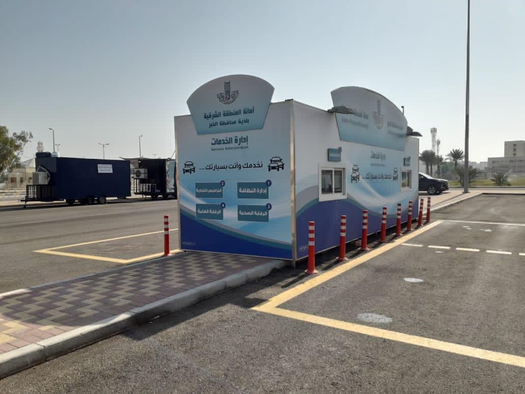 وأوضح "الزايدي" بأن استمرار هذه المبادرة يأتي ضمن حرص بلدية الخبر على تسهيل إنجاز معاملات المستفيدين وتحسين جودة العمل وتطويره وتقديم أفضل الخدمات البلدية لهم دون الحاجة الى النزول من السيارة، وذلك حفاظًا على صحتهم وسلامتهم، حيث تم تجهيز كبينة مجهزة بكافة الأجهزة والاحتياجات اللازمة لإتمام العمل في ساحة المواقف المحاذية لمبنى إدارة الخدمات تتضمن 4 نوافذ لتقديم الخدمات التابعة لكل من إدارة التراخيص التجارية، إدارة النظافة، الرقابة الصحية، الرقابة العامة، حيث تم تخصيص نافذة لكل إدارة.