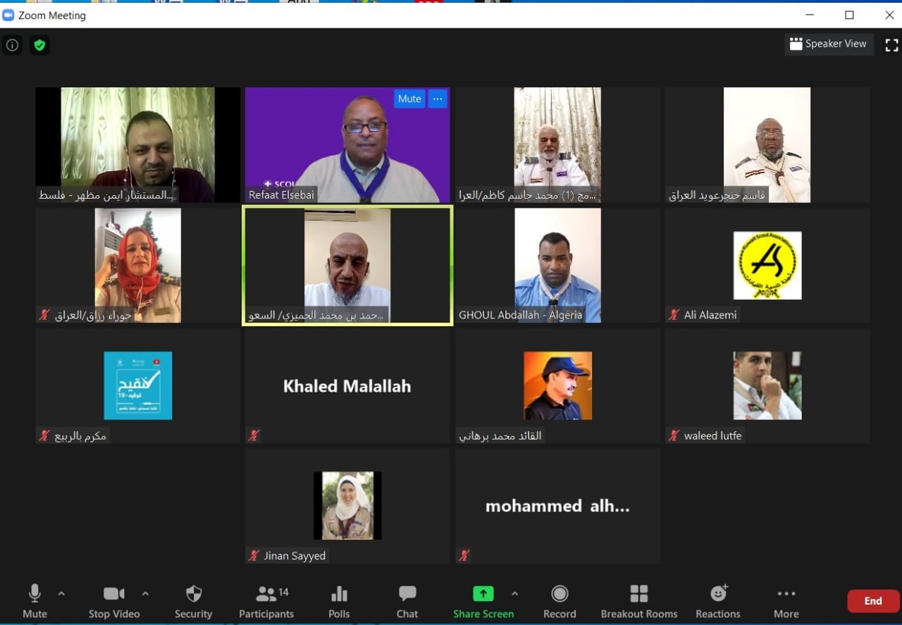 عقدت هيئة قيادة ورشة تنظيم وإدارة وتقييم الجلسة التدريبية ، التي يعتزم الإقليم الكشفي العربي تنظيمها خلال الفترة 4 – 7 ذي القعدة 1442هـ الموافق 14 الى 17 يونية 2021 اجتماعاً افتراضياً يوم أمس بحضور نائب المدير الإقليمي مدير الطرق التربوية رفعت السباعي ، و نائب رئيس اللجنة الكشفية العربية الفرعية لتنمية القيادات محمد الهنائي، وقادة تنظيم الورشة .