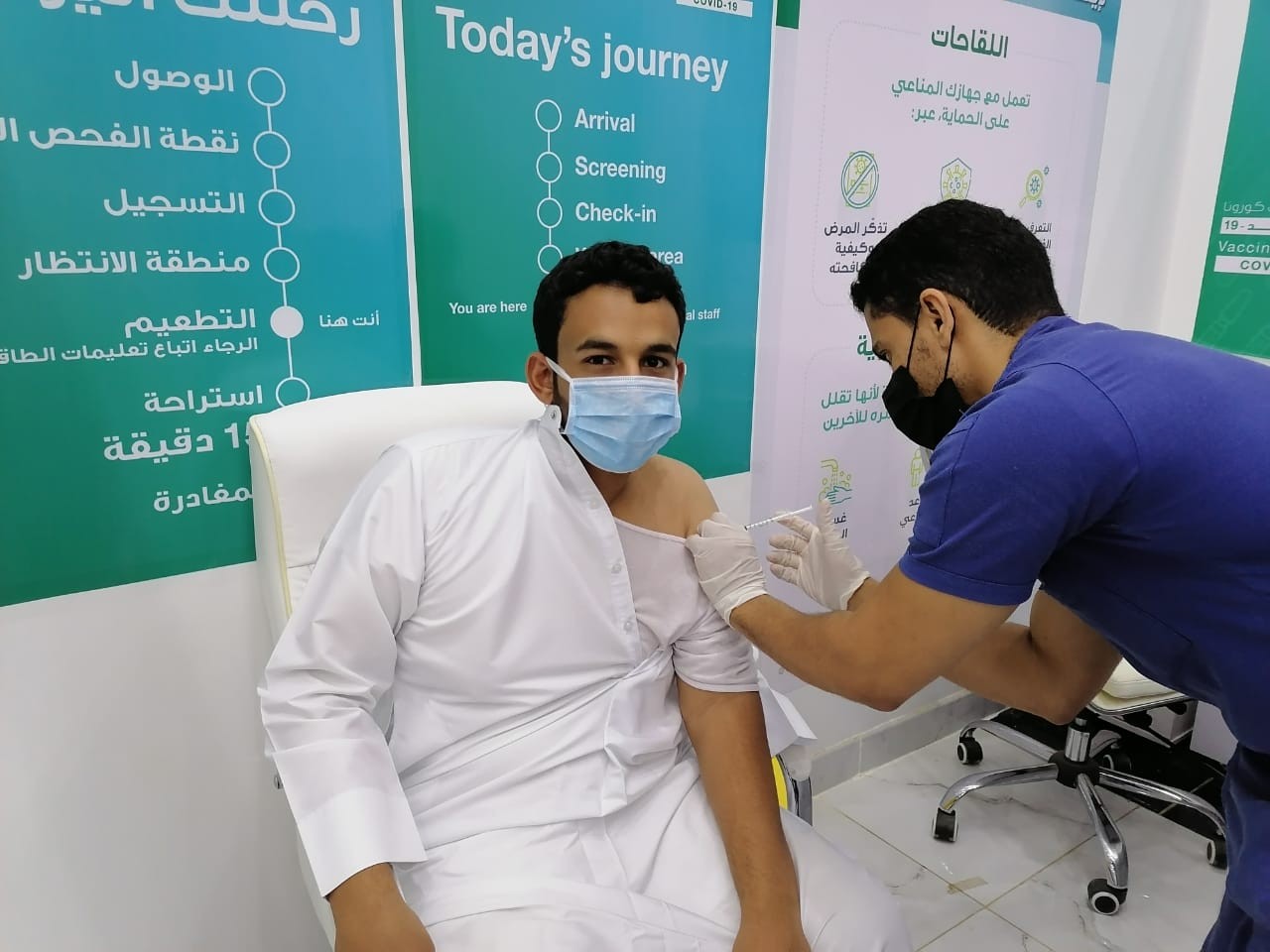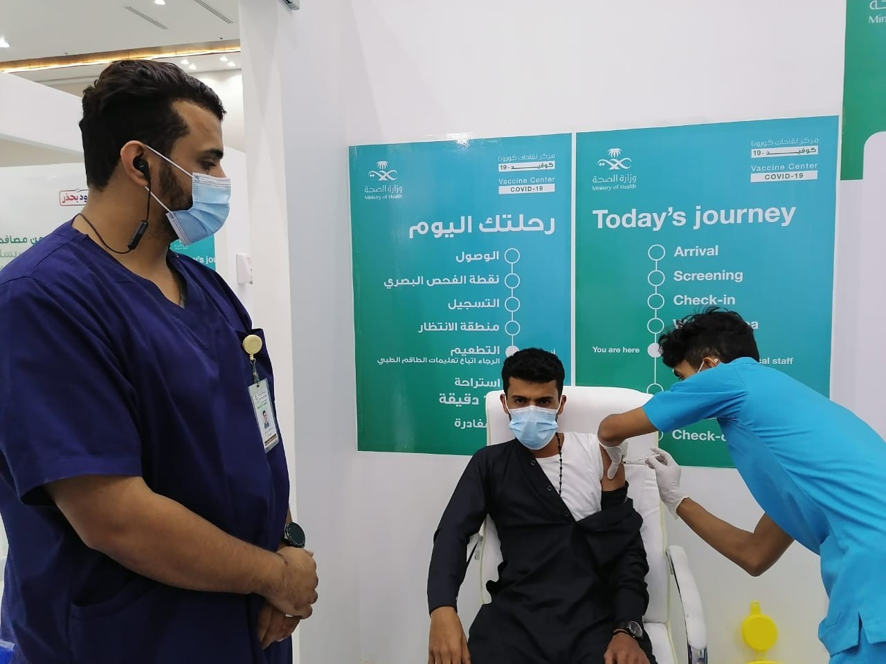 في جولة للحدث في مركز لقاحات كورونا كوفيد 19بالمركز الحضاري بأحد المسارحة .