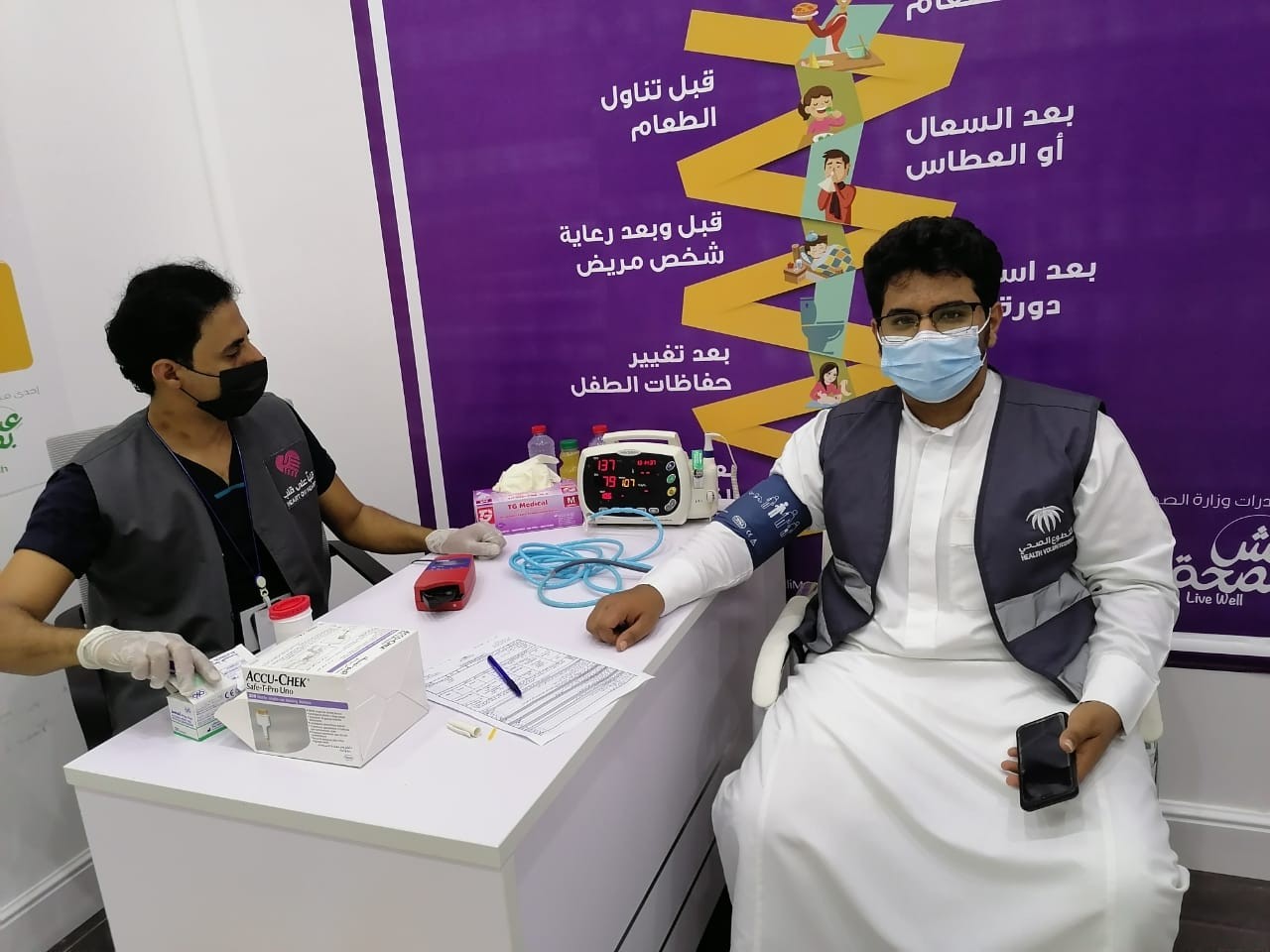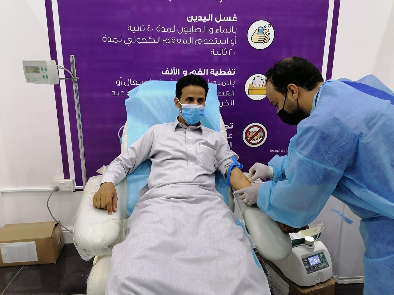 موضحا أن المتبرع بعد أن يسجل يخضع لقياس العلامات الحيوية ونسبة الهيموجلوبين للتأكد من مناسبته للتبرع ثم يوجه بعد ذلك للتبرع موضحا أن الحملة تستقبل المتبرعين من الجنسين وتستمر الحملة يومي الأربعاء والخميس 16-17.