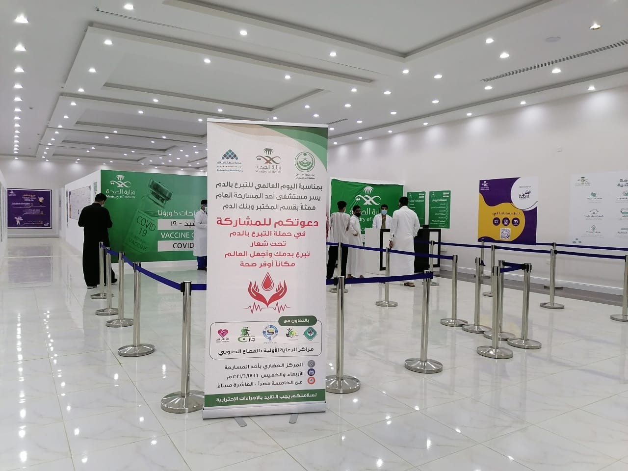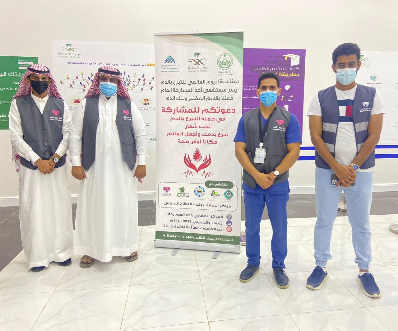بمناسبة اليوم العالمي للتبرع بالدم تحت شعار تبرع بدمك وأجعل العالم مكانا أوفر صحة أنطلقت مساء اليوم الأربعاء بالمركز الحضاري بأحد المسارحة حملة التبرع بالدم والتي ينظمها مستشفى أحد المسارحة العام ممثلا بقسم المختبر وبنك الدم وبمشاركة عدد من الفرق التطوعية التابعة لعدد من الجمعيات بالمنطقة.