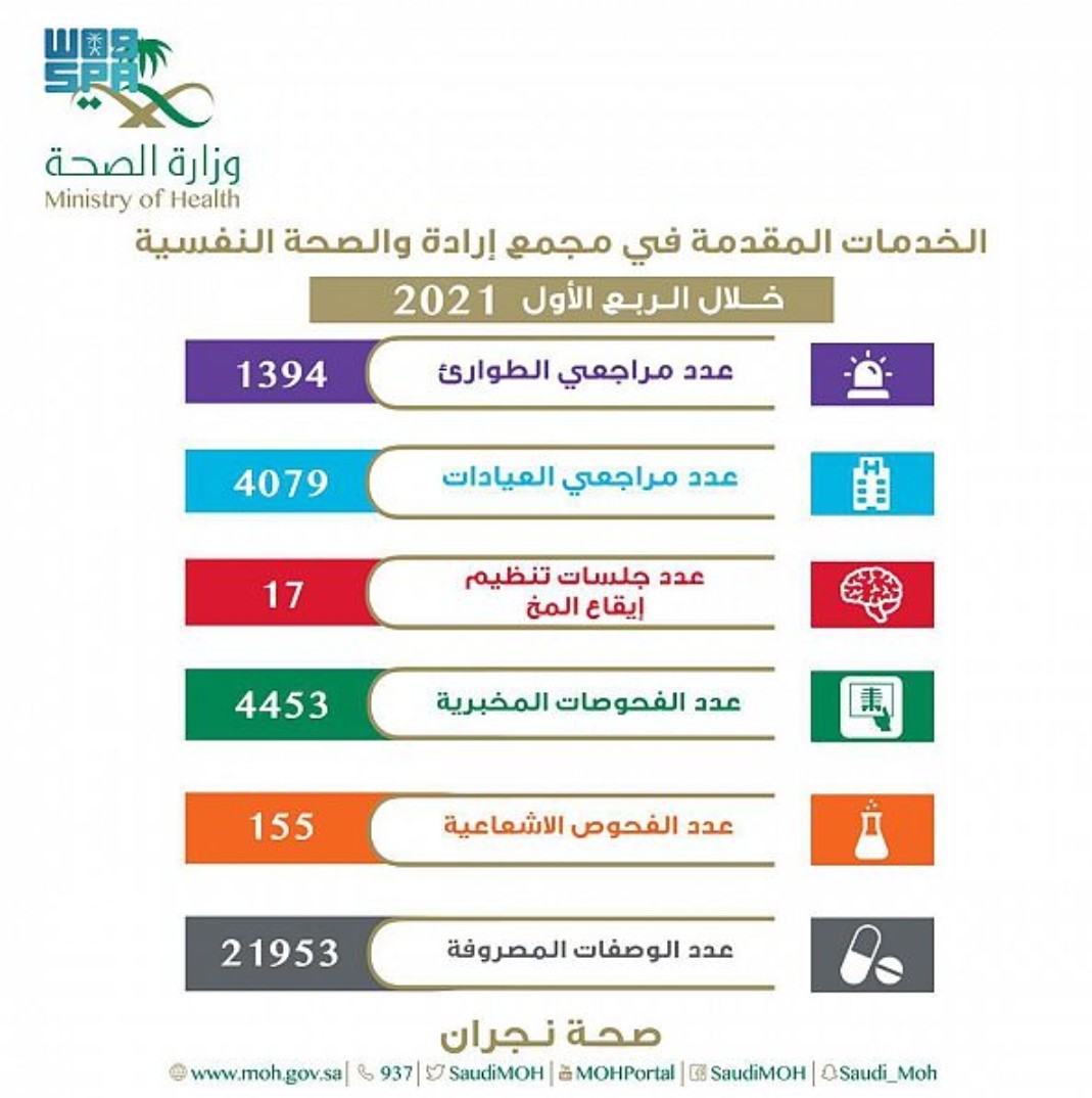 4079 مستفيداً من خدمات العيادات الخارجية بمجمع إرادة والصحة النفسية في نجران