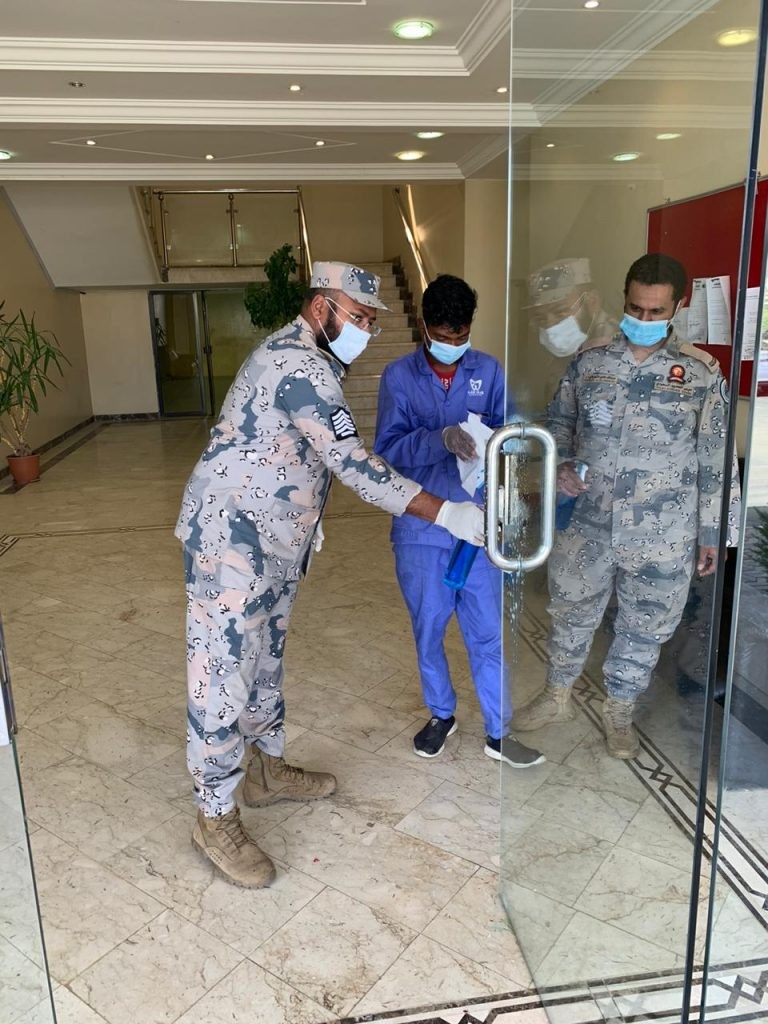 بتوجيه قائد حرس الحدود بمنطقة عسير اللواء / عبيد بن معوض حمدان الثبيتي وتحت أشراف مدير إدارة الشؤون الهندسية العقيد / مريع بن محمد بن سعد ال مريع قسم التشغيل والصيانة يقومون بالإجراءات الوقائية والاحترازية للوقاية من فايروس كورونا الجديد (كوفيد ١٩) وذلك بتوفير المعقمات والكمامات و القلفزات وكذلك بالإشراف المباشر من الأفراد العاملين بالقسم لتنظيف وتعقيم الأماكن الأكثر تعرضاً لنقل الفايروس سائلين الله أن يحفظ لنا أمننا وإيماننا وقادتنا ووطننا وجنودنا البواسل من كل شر ومكروه .