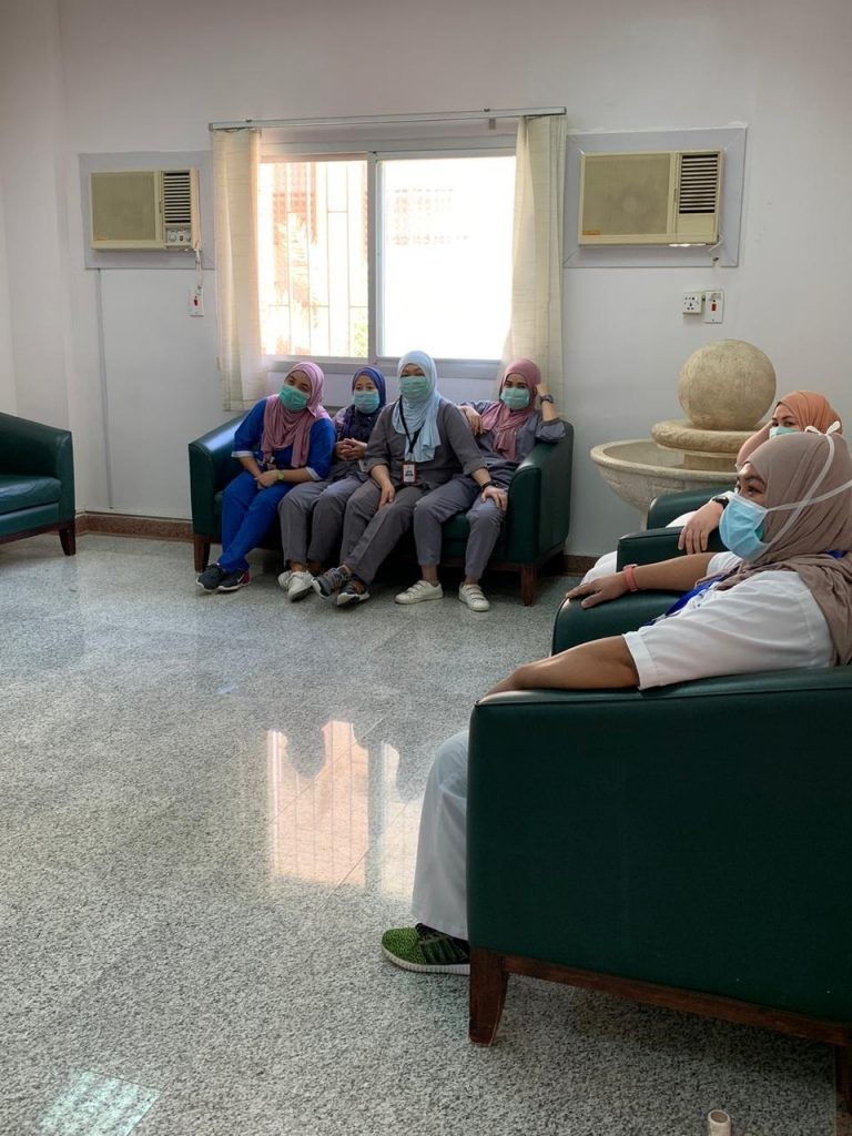 نفذت الممرضة  خديجة بن حمضة من وحدة التمريض بالمؤسسة انشطة متنوعة حول بعض  التدابير الوقائية اليومية ، وذلك بالفحص اليومي والعشوائي لجميع منسوبات المؤسسة موظفات ونزيلات وحارسات امن وركزت على عاملات النظافة، ايضا وضع الارشادات التوعوية وعرض مرئي بتلفزيون الاستقبال حول كورونا والتعليمات الواردة من الجهات المختصة وكيفية الوقاية من الفيروس و استخدام القفازات والمعقم والكمامات.