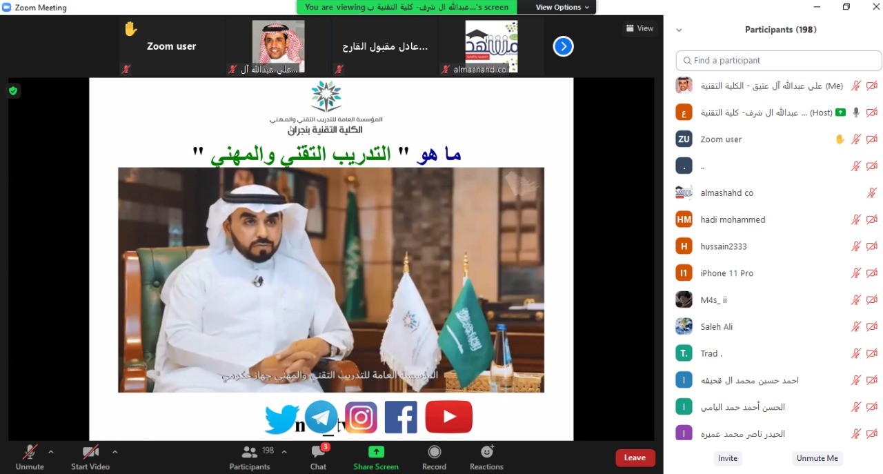 الكلية التقنية بنجران تواصل تنفيذ برنامج “التثقيف التعليمي والمهني” عن بُعد