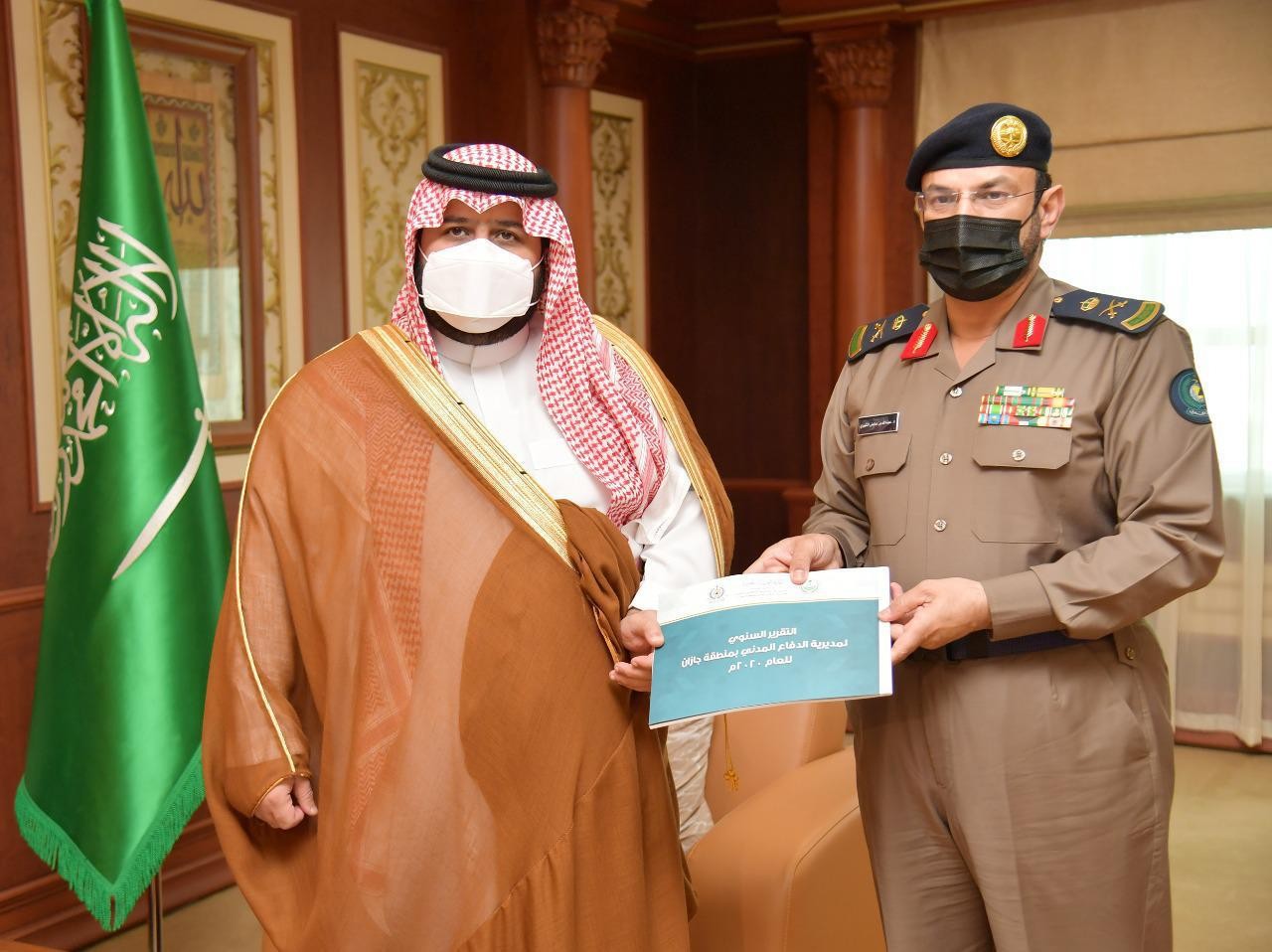 كما تسلم سمو نائب أمير منطقة جازان ، التقرير السنوي لإنجازات الدفاع المدني بمنطقة جازان لعام 2020 الذي اشتمل على جهود المديرية والإدارات التابعة لها والحالات التي تمت مباشرتها ، واستراتيجية مديرية الدفاع المدني لربطها برؤية المملكة 2030 عبر مرتكزات واهداف وزارة الداخلية .