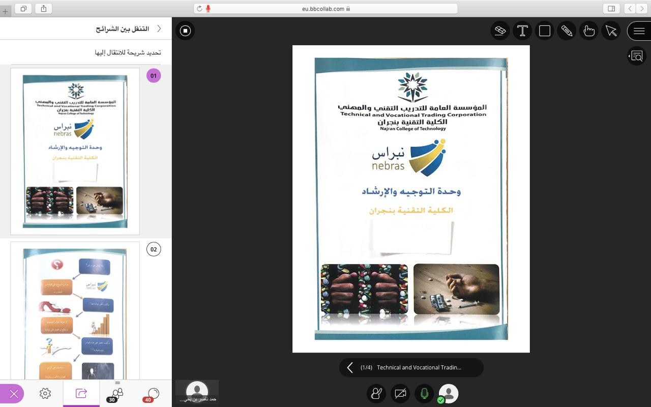 نفذت كلية التقنية بنجران ممثلة بوحدة التوجيه والإرشاد برنامج " نبراس " من خلال منصة التدرب الإلكتروني والذي يهدف الى تعريف المتدربين بالأضرار النفسية والجسدية والمستقبلية التي تسببها المخدرات، وطرق الوقاية منها.