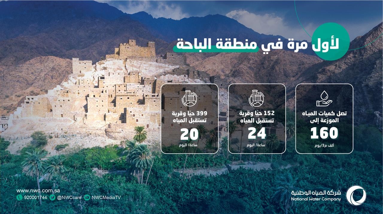 أعلنت شركة المياه الوطنية ممثلة بالقطاع الجنوبي استلامها لكميات المياه الإضافية المخصصة لمنطقة الباحة من المياه المحلاة والبالغة (80) ألف م3 / اليوم.