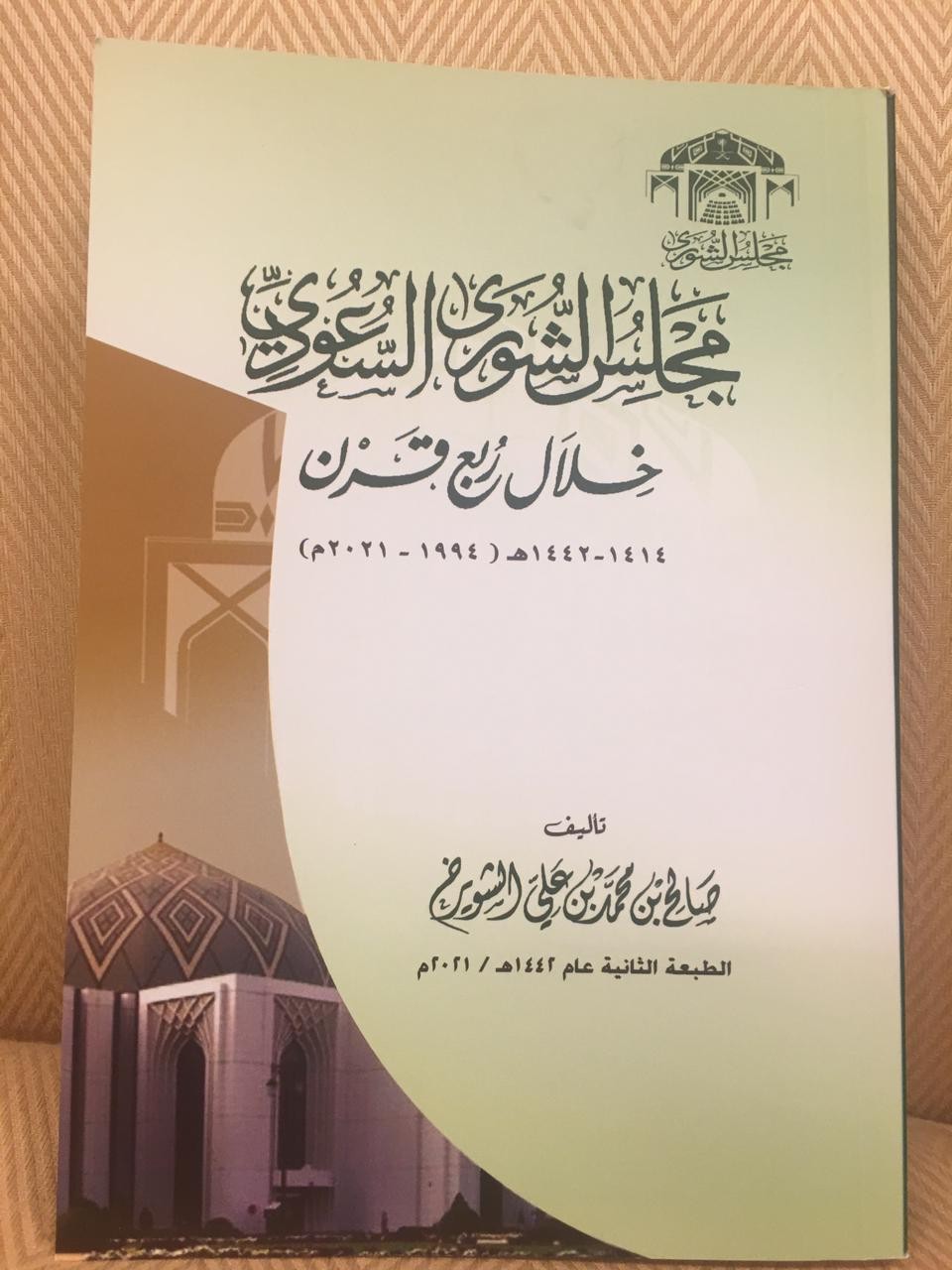 وثق الكاتب والمؤلف صالح بن محمد الشويرخ مسيرة 25 عاماً (ربع قرن) لمجلس الشورى السعودي (من 1414 إلى 1442هـ)، في كتاب استقبلته المكتبة العربية خلال الأيام الماضية، يكشف تفاصيل مهمة ومسيرة حافلة وتفاصيل يجري كشفها للمرة الأولى لواحد من أهم المجالس النيابية في العالم العربي.