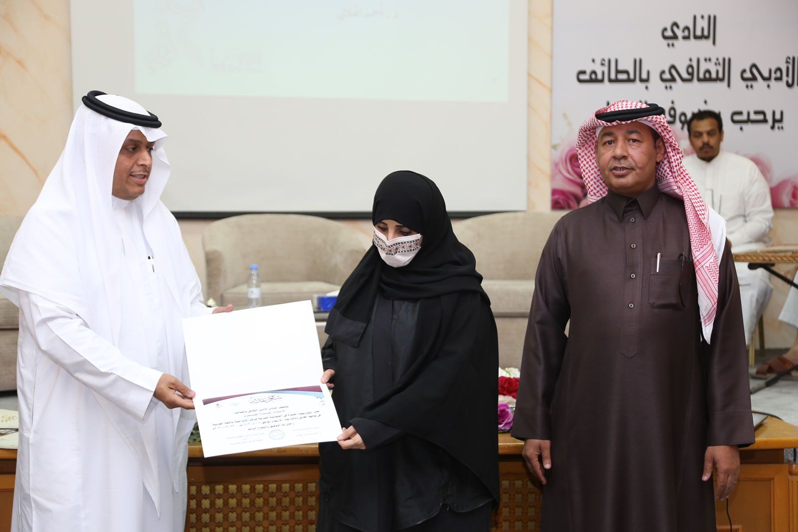 ألقى بعد ذلك الشاعر عايض الثبيتي والشاعر عادل الحصيني قصيدتين شعريتين بهذه المناسبة نالت استحسان وإعجاب الحضور وقد استمع الحضور بين فقرات الاحتفائية لوصلات موسيقية على آلتي العود والقانون للعازفين عدي القرشي ومحمد الشهري كما تم تدشين كتاب الطائف أقلام وألوان تشكيلية الذي طبع في النادي مؤخرا من جمع وإعداد الأستاذة فاطمة الشريف وقدمت فقرة للحديث عن مواقف وذكريات للمبتعثين من قبل الدكتورة فاطمة الحصيني والأستاذ محمد سعد الأسمري فيما قدمت معلقة فرقد الخاصة باللغة العربية والتي كتبت من قبل شعراء الجماعة وأداء عضوي الجماعة الأستاذة صباح العمري و الأستاذ عبدالله الأسمري بعد ذلك فتح الباب للمداخلات حيث تداخل كل من الدكتور فوزي خضر والدكتور صالح الثبيتي والأستاذة صباح العمري والأستاذة عائشة العصري والدكتورة فاطمة غزالي والأستاذة فاطمة الشريف ، وفي نهاية الاحتفائية تم تكريم المشاركين من قبل رئيس النادي عطا الله الجعيد بشهادات تقديرية .
