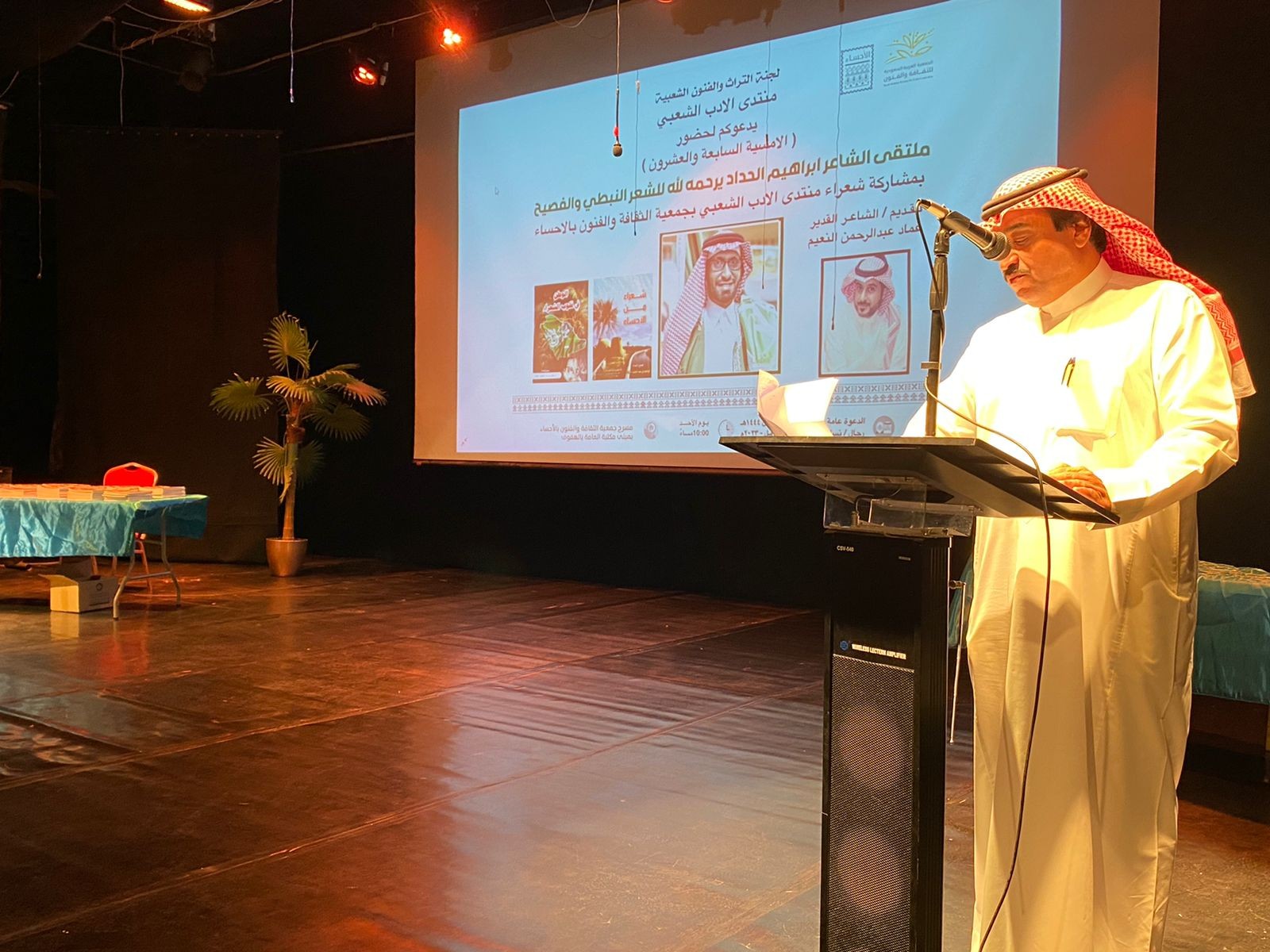أقام منتدى الأدب الشعبى بجمعية الثقافة والفنون بالأحساء، أمسية شعرية استثنائية تجسد ذكرى الشاعر والباحث إبراهيم بن عبداللطيف الحداد "رحمه الله" .