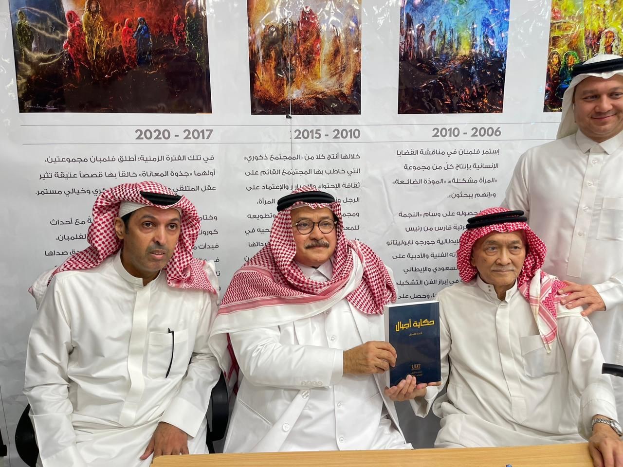 احتفى ٦٠٧ فناناً وفنانة تشكيلية سعودية بالكتاب الوثائقي (حكاية أجيال) الذي طرحه الفنان والمؤلف أحمد فلمبان بجمعية الثقافة والفنون بجدة مساء أمس، بعد 7 سنوات من العمل الجاد، ترقبته الأوساط الثقافية في المملكة، وجرى جمع مادته العلمية على مدار 25 عاماً، ليقدم رؤية شاملة عن الأجيال المتلاحقة للحركة الفنية التشكيلية في المملكة.