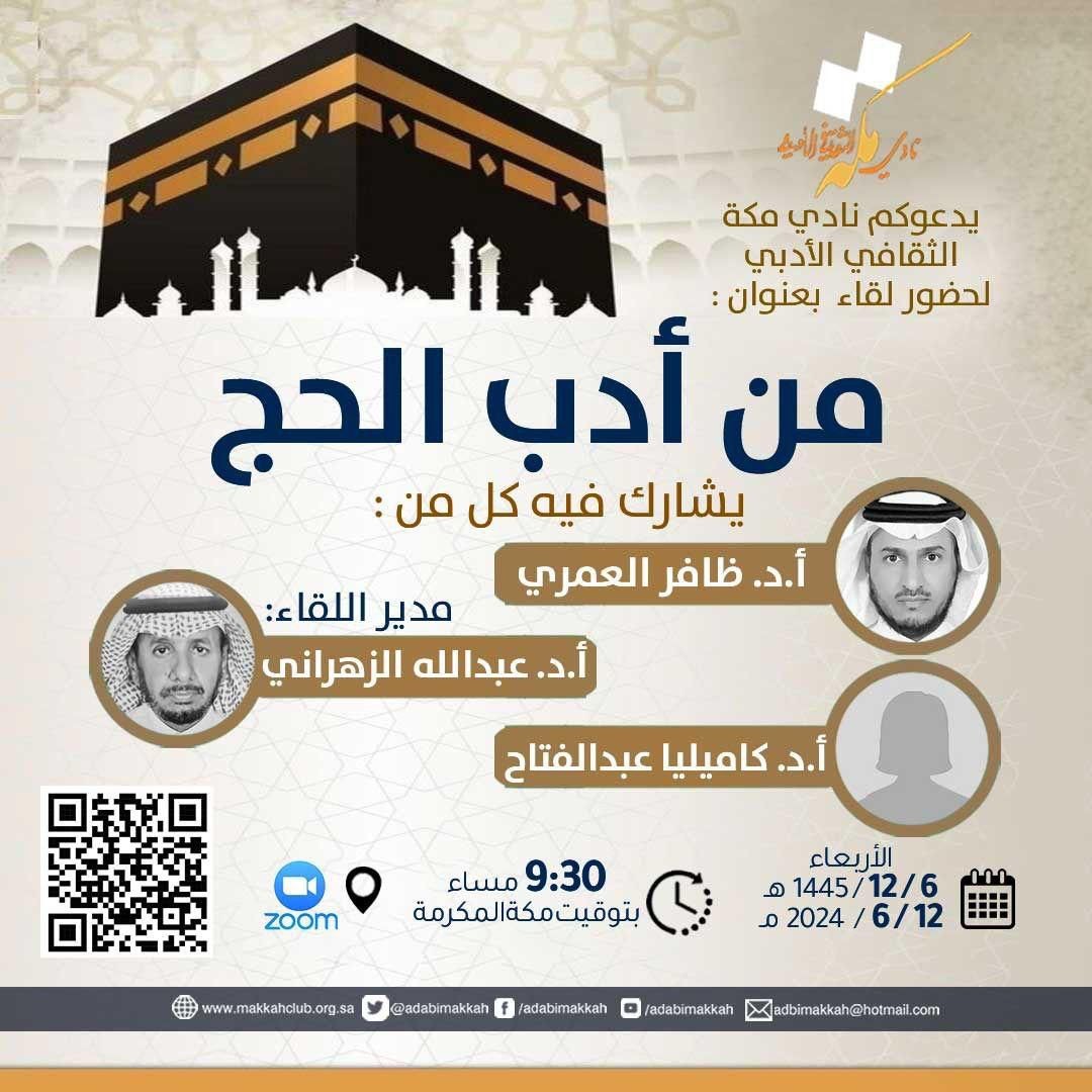 "من أدب الحج" لقاء يقيمه أدبي مكة عبر تطبيقZOOM