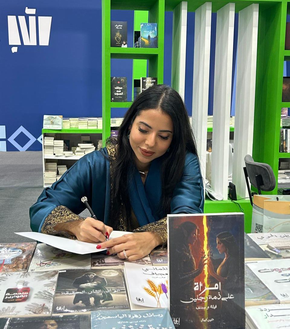 على منصة التوقيع بمعرض جدة للكتاب 2025، والذي تنظمه هيئة الأدب والنشر، وقّعت الكاتبة حنين كمال على روايتها "امرأة على ذمة رجلين"، الصادرة عن "دار إرفاء".