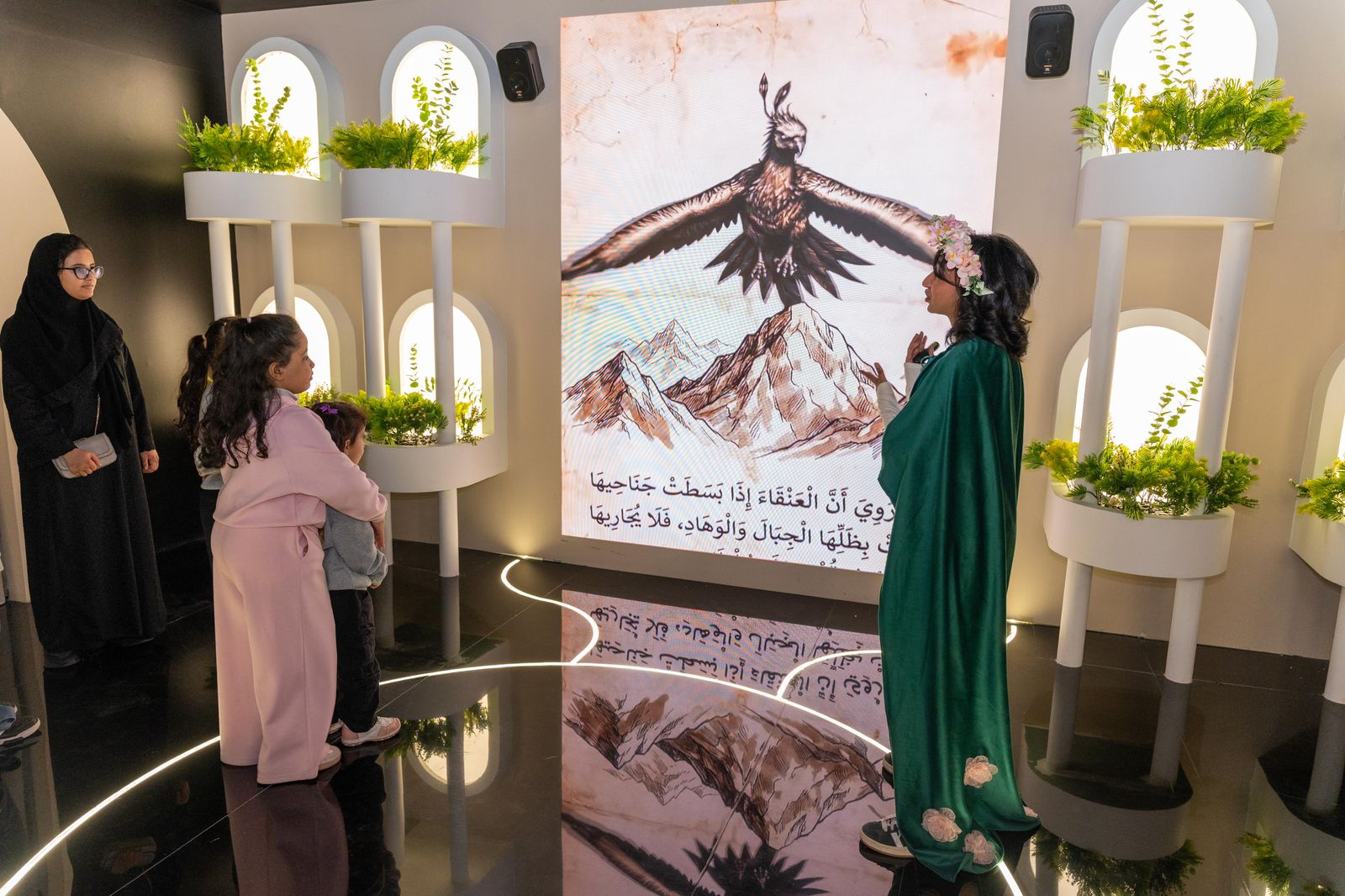 وجسّدت التجربة أكثر من 14 عملًا أدبيًا مستلهمًا من أعمال عربية وعالمية، من بينها "الحيوان" للجاحظ، و"الأمير الصغير"، و"ساق الغراب"، و"روبنسون كروزو"، و"أليس في بلاد العجائب"، في بيئة تفاعلية تمنح الأدب حضورًا بصريًا ملموسًا.