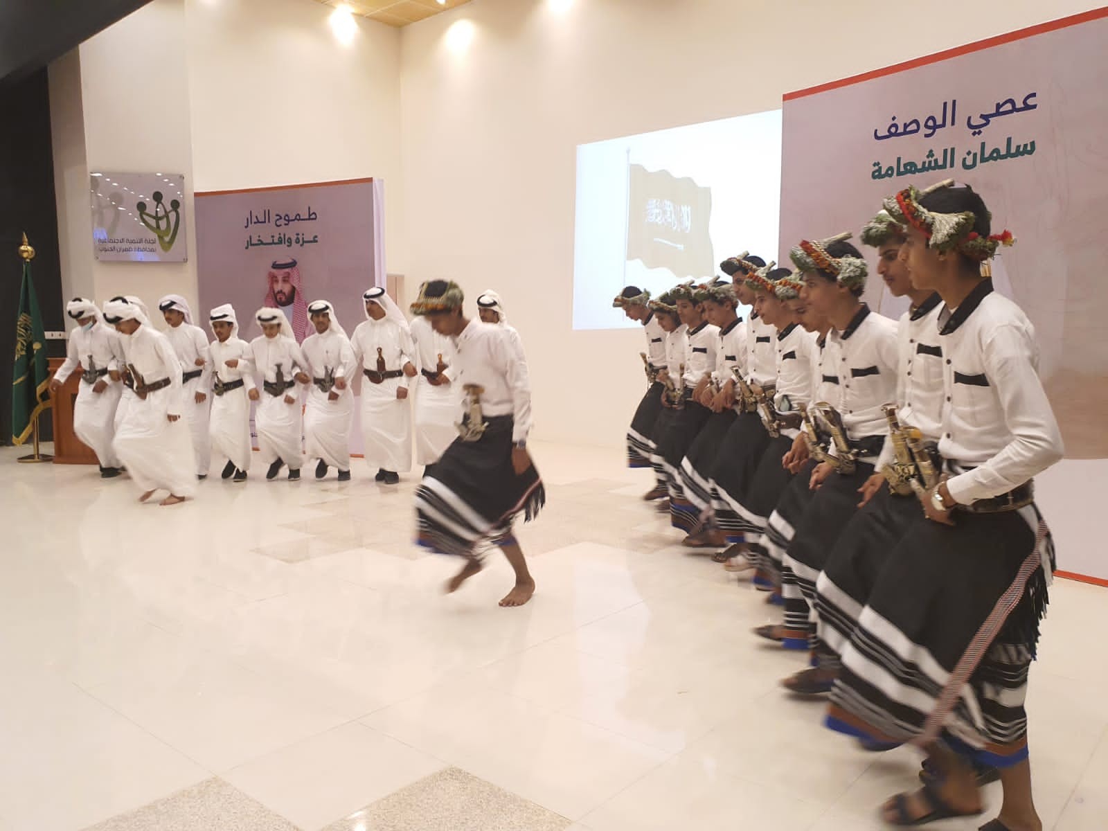 وكان الختام مع تراث وطن وهي لون شعبي من أداء طلاب ثانوية الملك فيصل وثانوية أبي بكر الصديق بمشاركة المحافظ ومدير التعليم ورؤساء المراكز الإدارية.