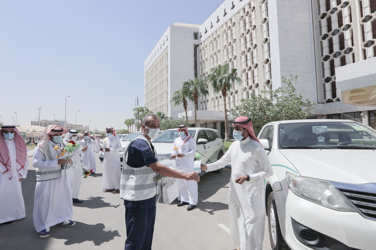 وتم توزيع باقات الورود والإهداءات على المفتشين والمراقبين وهم في مركباتهم الرسمية وقبل خروجهم لأداء عملهم الميداني، بحضور مدير عام الإدارة العامة للرقابة التجارية هشال الحمدان، والذي كان له الدور البارز في إنجاح المبادرة ، الذي قدم شرحا مختصر للمهام الرقابية للفريق، وأثنى على هذه المبادرة الوطنية التي تدل على حس المسؤولية المجتمعية لدى إدارة الفريق، مثمناً هذه الزيارة ومؤكداً على الدور المهم الذي يقدمه فريق ورود نوارة التطوعي.