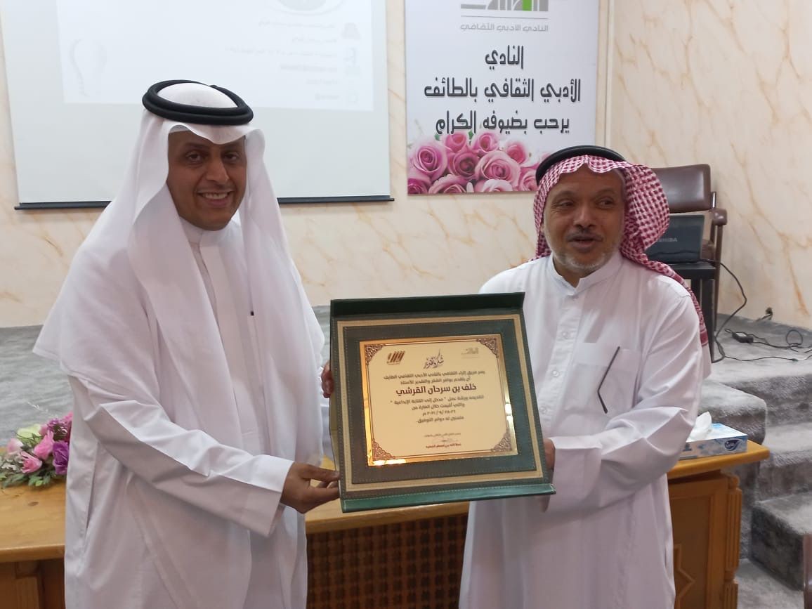وفي نهاية الورشة سلم رئيس النادي الشهادات للمشاركين وتكريم مقدم الورشة الكاتب خلف القرشي بدرع تقديري من النادي.