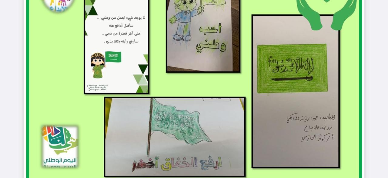 هذا وقد تم الاحتفاء باليوم الوطني عن بعد بـ 39حائط الكتروني والعديد من التغريدات المعبرة عن حب الوطن كما ساهم الأطفال وأولياء الأمور بمشاركات منوعة تضمنت العديد من الصور والفيديوهات الوطنية .