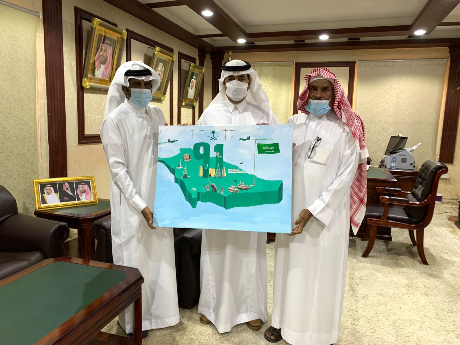 استقبل محافظ بيش د. تريحيب بن عماش ال حفيظ صباح اليوم ، بمقر المحافظة الفنان التشكيلي قالب الدلح الذي قدم إهداء للمحافظ تمثل في لوحة وطنية من أعماله الفنية بمناسبة اليوم الوطني الواحد والتسعون.