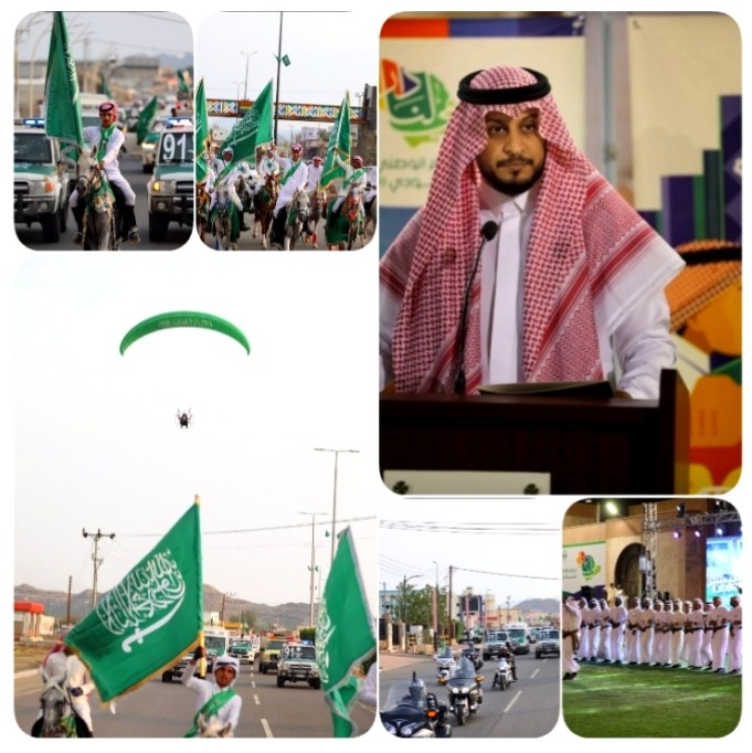 بعد ذلك توالت فقرات الحفل والتي تضمنت قصائد نبطية وشعبية، إضافة إلى مشاركة طلاب مدارس مكتب بحر أبو سكينة ، ثم قصيدة بوح المشاعر ، إلى ذلك تكريم الذين أنجحوا هذه المناسبة وتكريم الطلاب والطالبات الذين تميزوا على مستوى المملكة ، بعد ذلك كان الجميع على موعد مع اوبريت "هي لنا دار" من كلمات الشاعر أحمد المنجحي وأداء  الفنان عبد الرزاق عسيري وبمشاركة الفرقة الشعبيه ببحر أبو سكينة التي أسعدت الحضور ، حيث تفاعل الجميع معها ، وفي الختام كان الجميع على موعد باطلاق الألعاب النارية ، هذا وكانت مسيرة الدراجات والخيول والسيارات التي تزينت بالعلم السعودي ، وكذلك الطيران الشراعي قد إنطلق بعد عصر أمس شاركت في تنظيمها الجهات الأمنية ، كما سبق الحفل الخطابي الإطلاع على لوحتين جداريتين للفنانة التشكيلية عائشة عسيري إحداها للقيادة بالليزر والأخرى لمنجزات الوطن كانت تجسد حب الوطن، بعد ذلك تم افتتاح المعرض التراثي لمالكه حمد بن علي الأسلمي والذي اشتمل على مقتنيات تراثية مميزه.