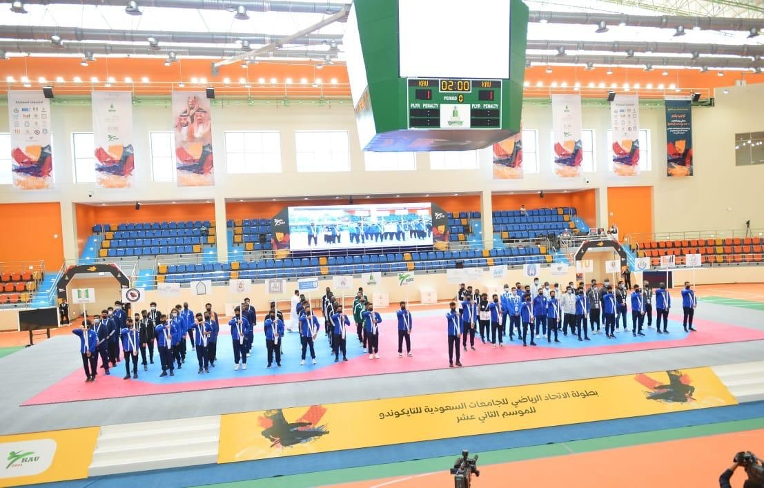 دشن رئيس جامعة الملك عبدالعزيز الأستاذ الدكتور عبدالرحمن بن عبيد اليوبي بالنيابة عن معالي وزير التعليم الدكتور حمد بن محمد آل الشيخ منافسات بطولة التايكوندو أولى بطولات الاتحاد الرياضي للجامعات السعودية للموسم الرياضي الـ 12 للجامعات السعودية بعد توقف النشاط الرياضي الجامعي بسبب جائحة كورونا، وتستضيفها جامعة الملك عبدالعزيز، وذلك صباح اليوم الخميس بالقرية الرياضية بالجامعة، من الفترة 23 ـ 25 / 2 / 1443هـ الموافق 30 / 9 ـ 2 / 10 / 2021م.