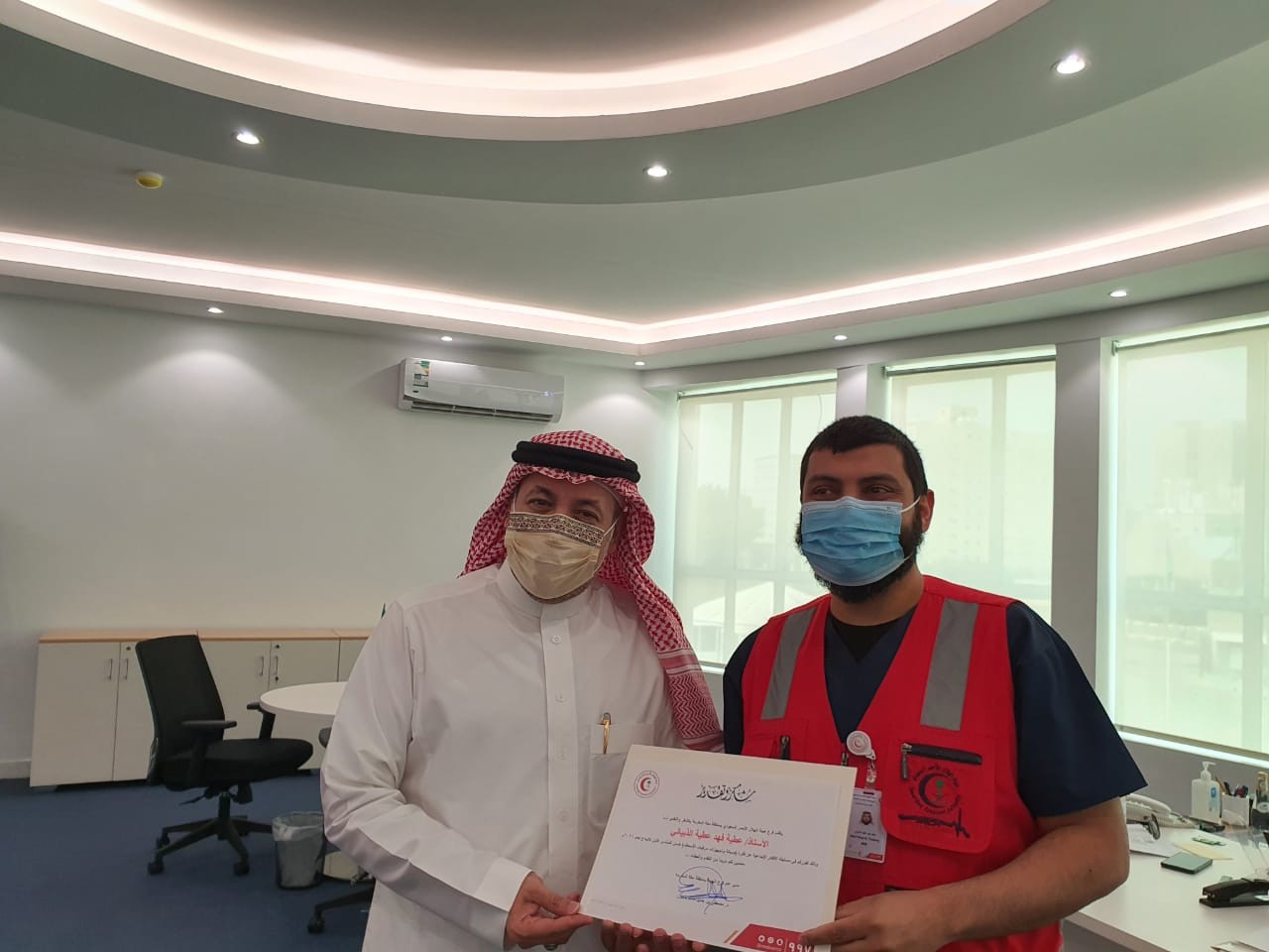 كرم مدير عام فرع هيئة الهلال الأحمر السعودي بمنطقة مكة المكرمة الدكتور مصطفي بن جميل بلجون اليوم الخميس الفائزين من منسوبي المنطقة في ملتقي الإبداع الأول الذي عقد مؤخراً في المركز العام بالرياض، وهم حسين عثمان الزهراني الفكرة (دليل الاجهزه الطبية)، عطية فهد الذبياني الفكرة (انشاء محطات تنظيف وتجهيز عربات الإسعاف)،خالد عمر باقاسي الفكرة (استخدام الدرجات الناريه في العمل الاسعافي)، هاني عائض الزهراني الفائز في مسابقة(شغف) للتصوير.