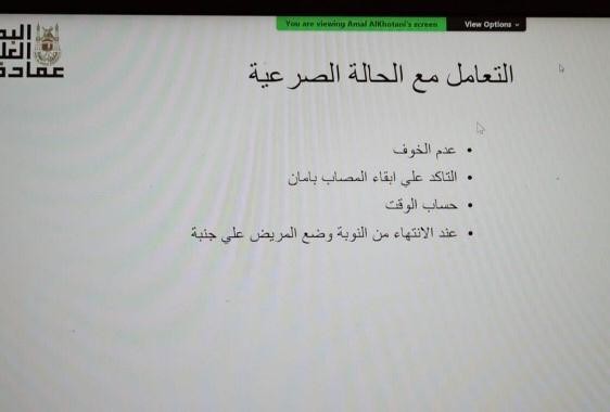 بهدف تقديم الإسعافات الأولية لمريض الصرع والحالات التشنجية، والتعرف على الطرق الصحيحة للإسعاف الأوليه لمريض الصرع والحالات التشنجية مع ذكر أنواع الصرع وحالاته، توضيح دور الموجهة الصحية في مواجهة حالات الصرع .