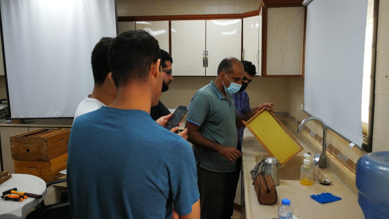 فيما جاء الجانب التدريبي حول فحص الخلية، ضم الخلايا بطريقة النثر وباستخدام الجرائد، تثبيت الاساسات الشمعية، فرز العسل ومعرفة العسل الناضج، وطرق فحص ورفع الاطارات الزائدة عن حاجة خلايا النحل، وصيانة صناديق التربية وسد الشقوق فيها، وتعليم ملكات النحل.