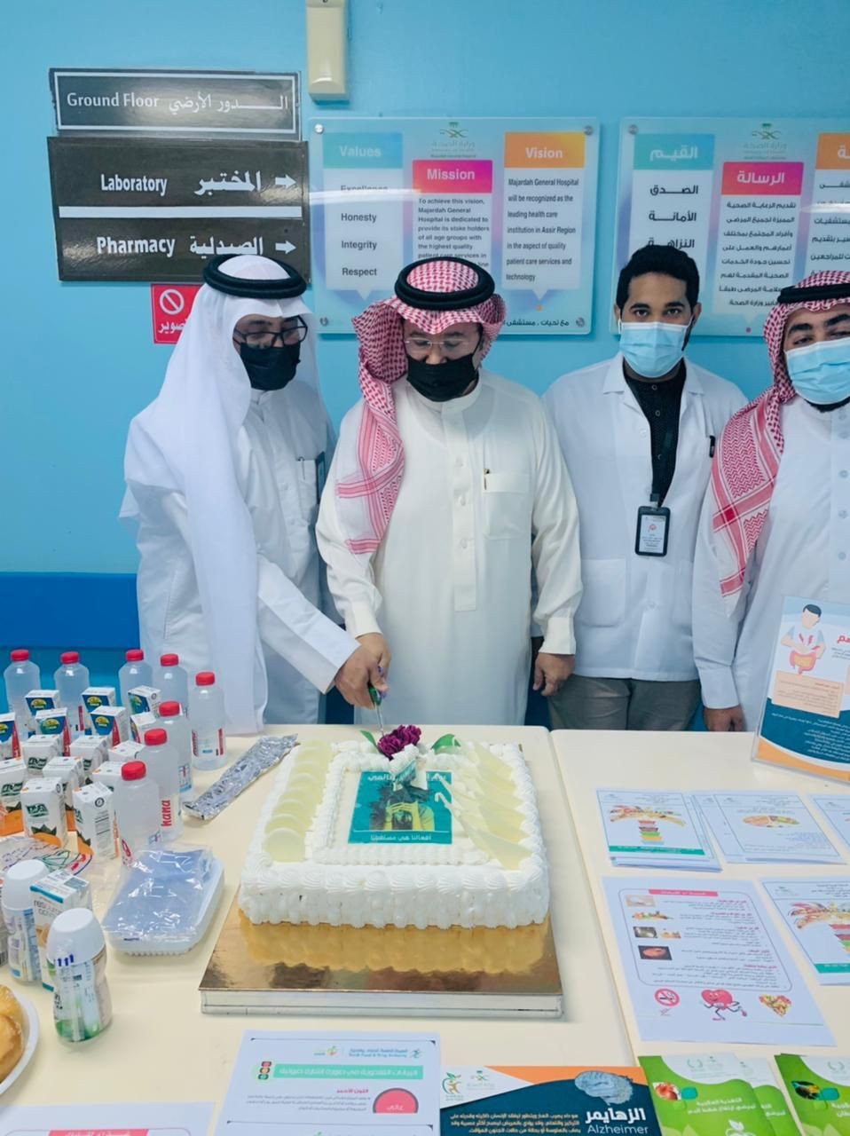 عقب ذلك قام محافظ المجاردة بزيارة للمرضى المنومين ومن ثم تجول بين أقسام المستشفى والطوارئ والأشعة والمختبر والصيدلة ثم دشن فعالية اليوم العالمى للغذاء.